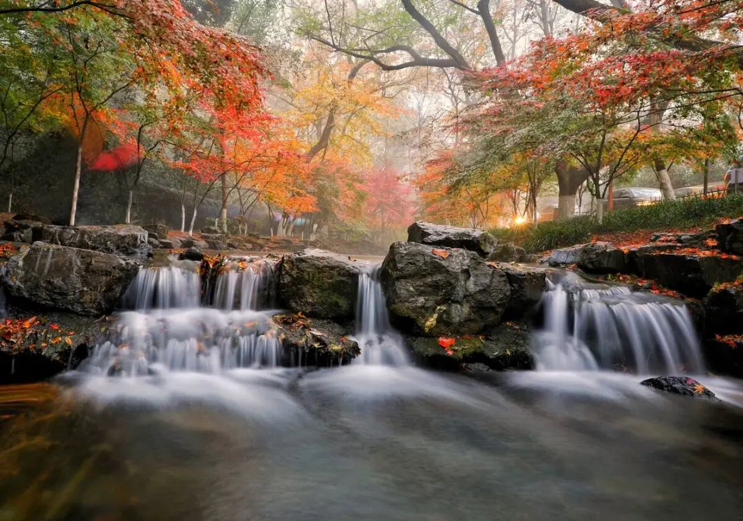 早起我们乘车前往九溪十八涧拍摄晨雾中的九溪彩虹树、流水慢门、红枫倒影,随后驱车前往苏州,下午前往拙政园拍摄。
