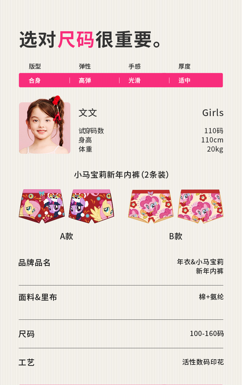 【小马宝莉新年内裤】年衣童装儿童女童平角内裤组合卡通小马宝莉