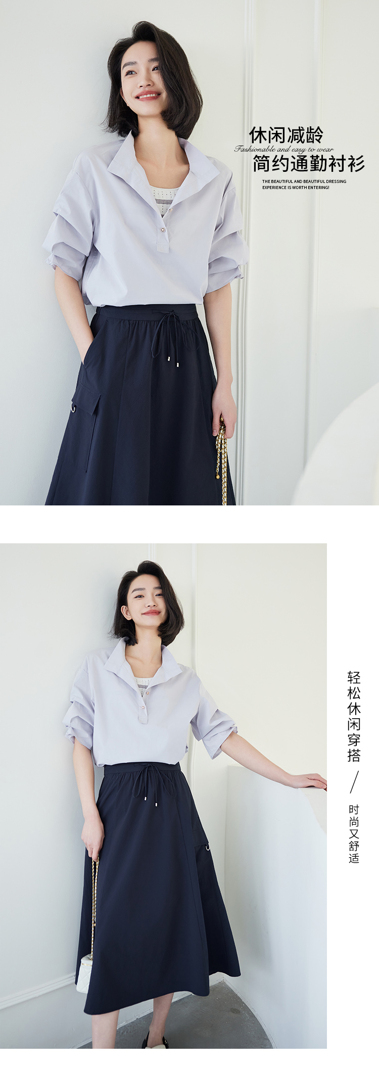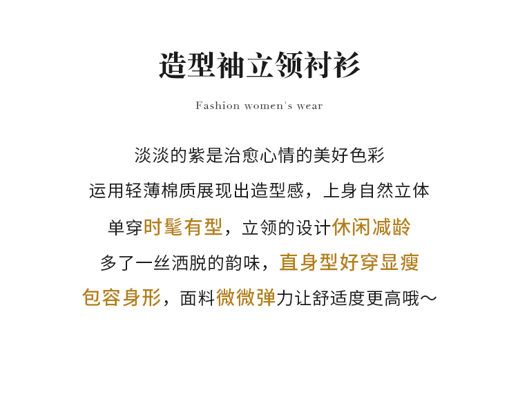 【商场同款】CNV5493 “ 晨雾紫造型衬衫 ” 晨曦紫柔和娴静 大H廓形包容性好,不显腰腹 气泡袖优美又独特,把休闲与浪漫挥洒得轻盈自如