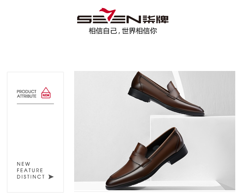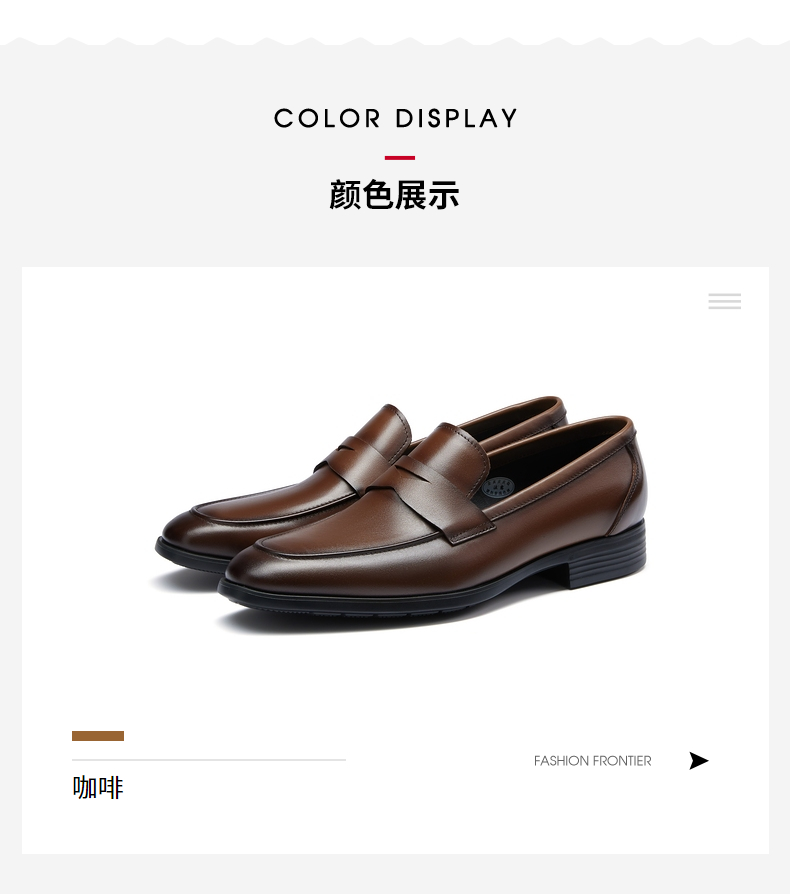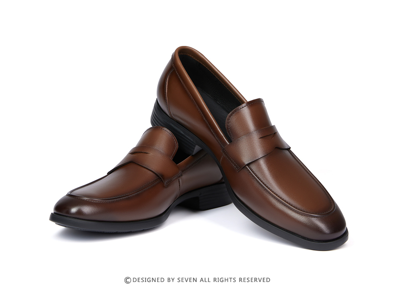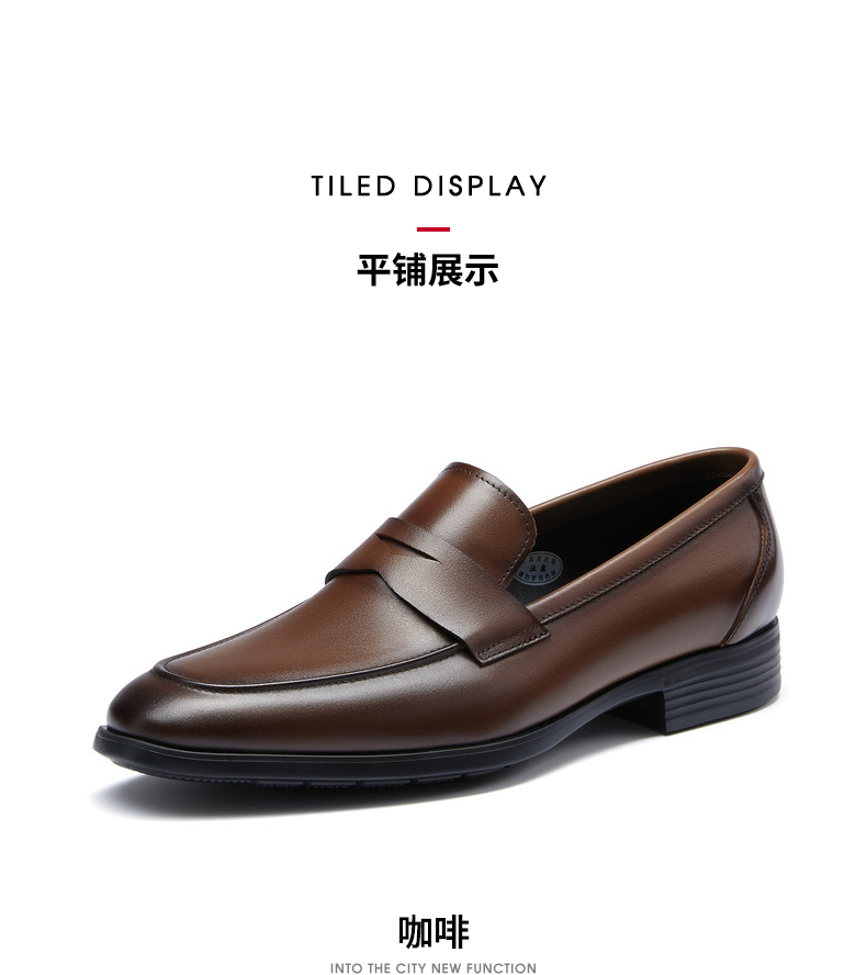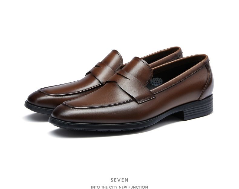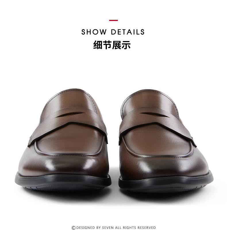 柒牌男士皮鞋2024新款英伦风正装男士真皮商务一脚蹬套脚懒人鞋子 126X70370