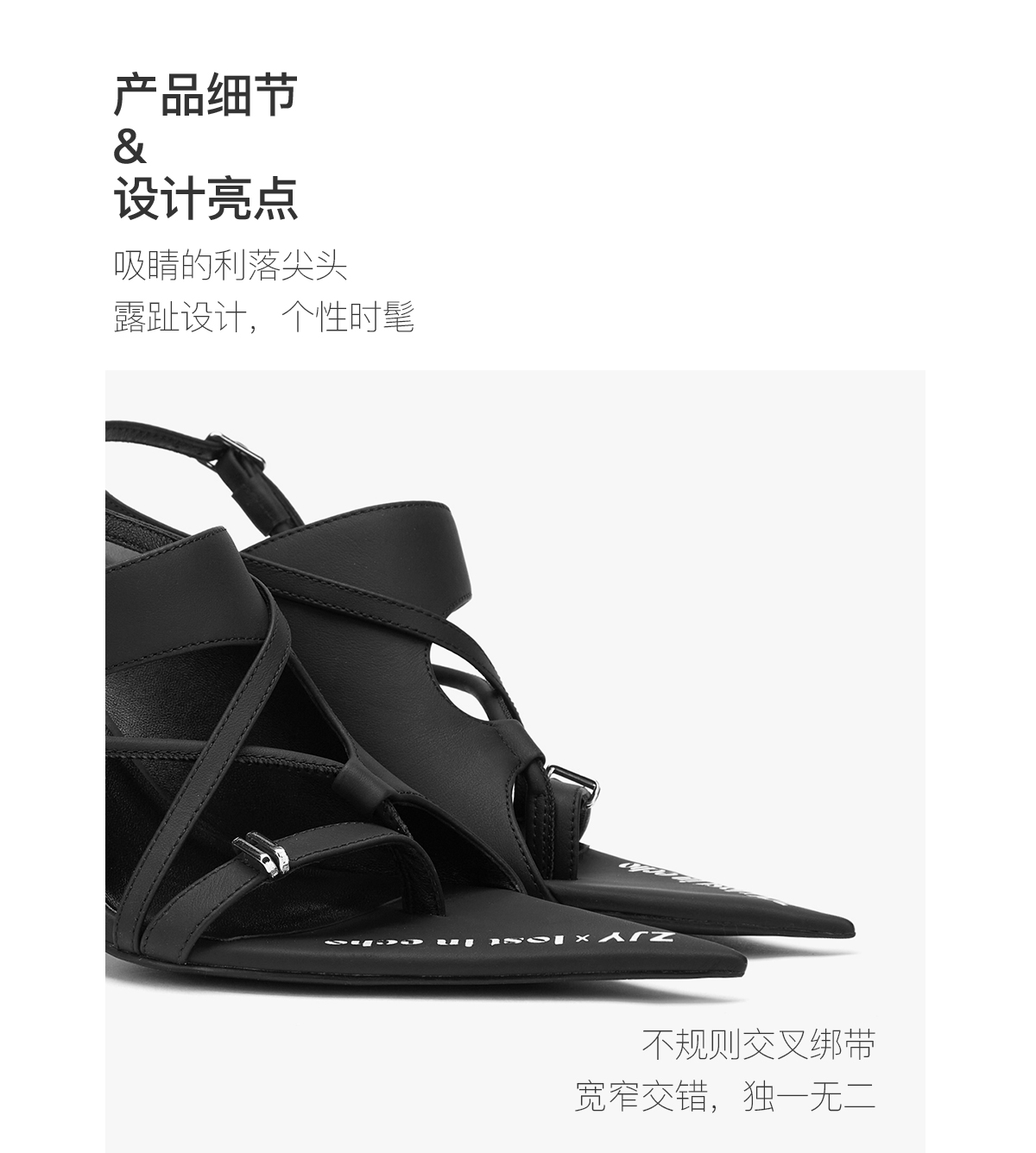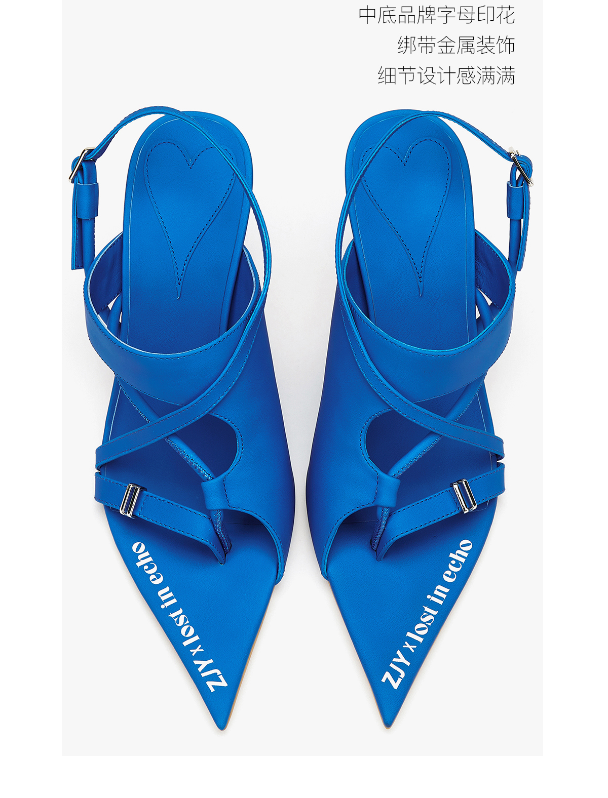 【下架】lost in echo x ZHANGJIAYI 不规则绑带LOGO印花尖头凉鞋