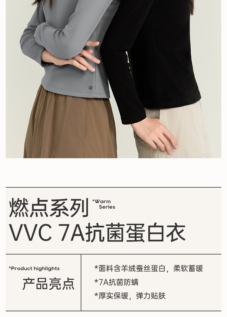 【厚实保暖 弹力贴肤!】VVC燃点·抗菌蛋白衣 VGA4S606 女士打底衫半高圆领早秋修身长袖