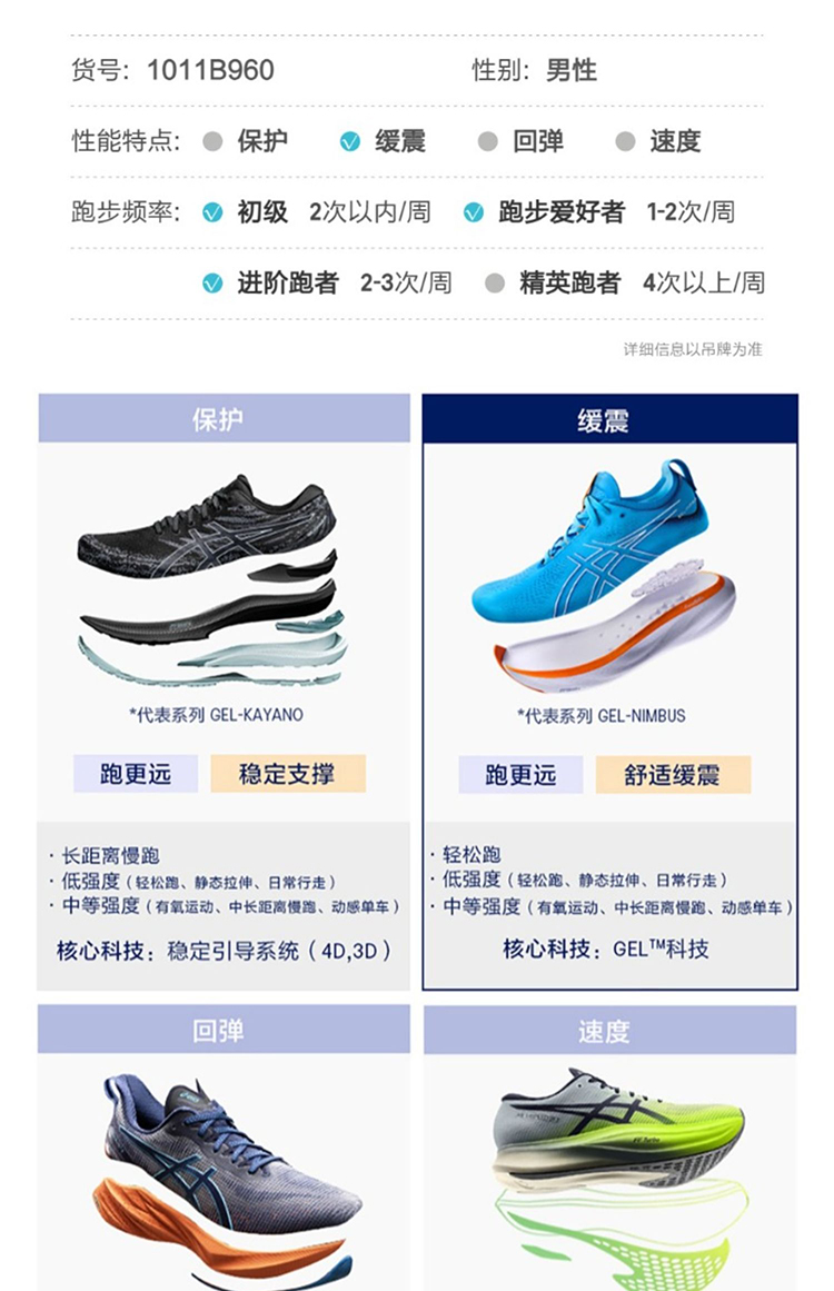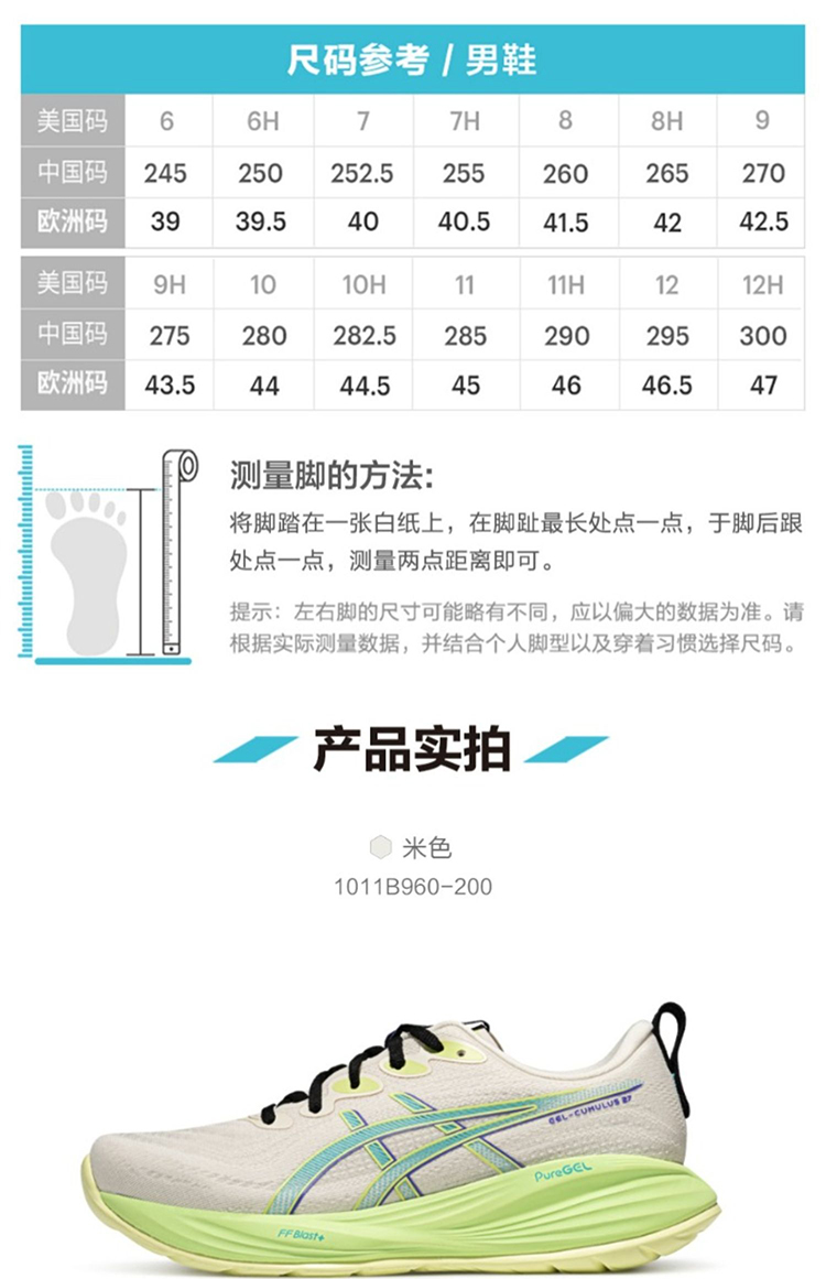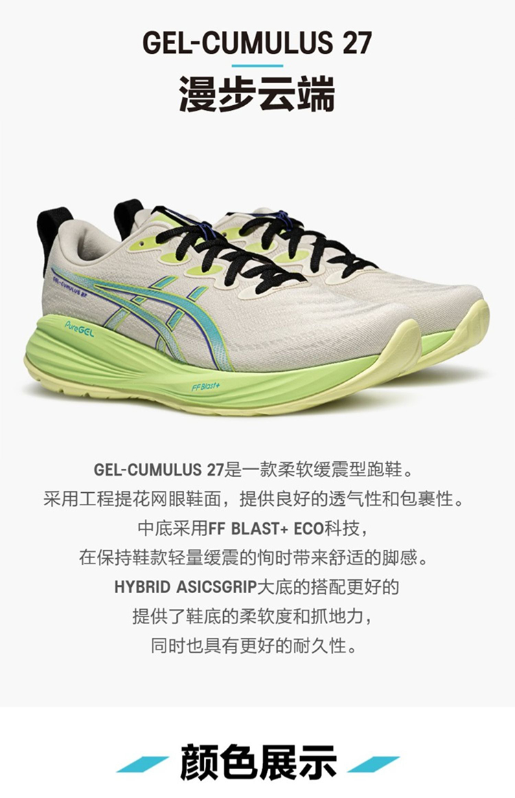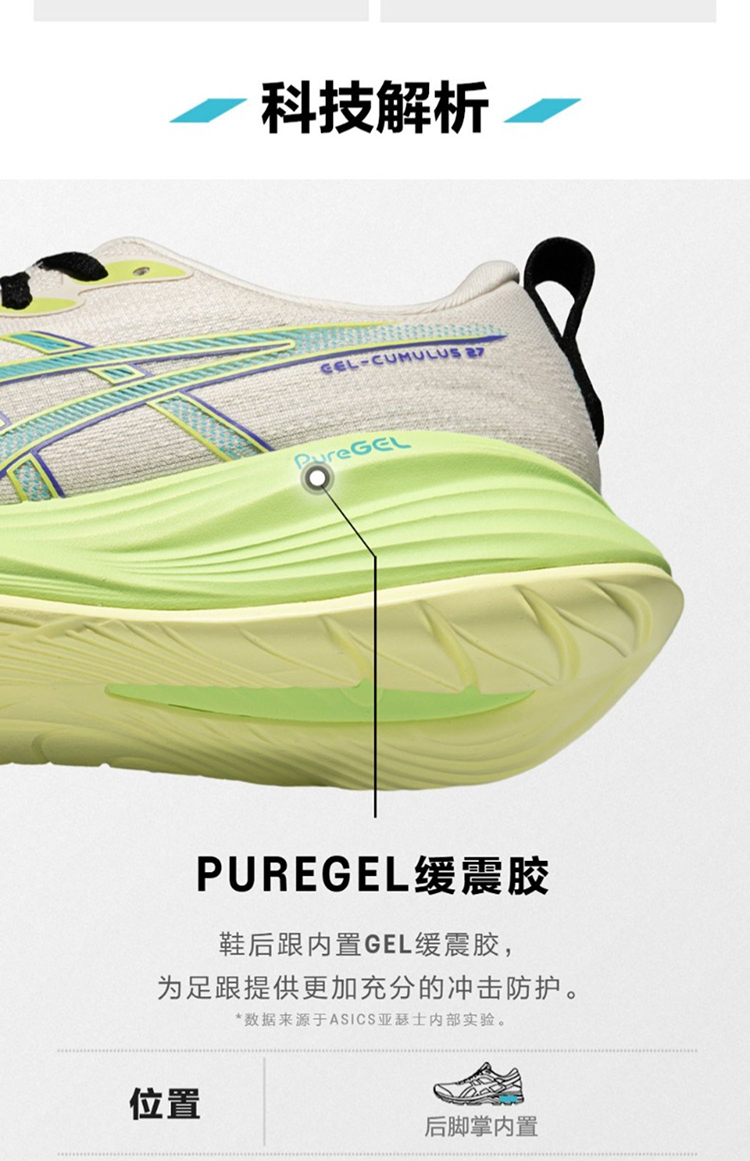 ASICS 亚瑟士 CUMULUS 27男女款缓震轻便回弹耐磨透气跑步运动鞋