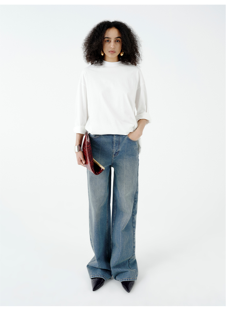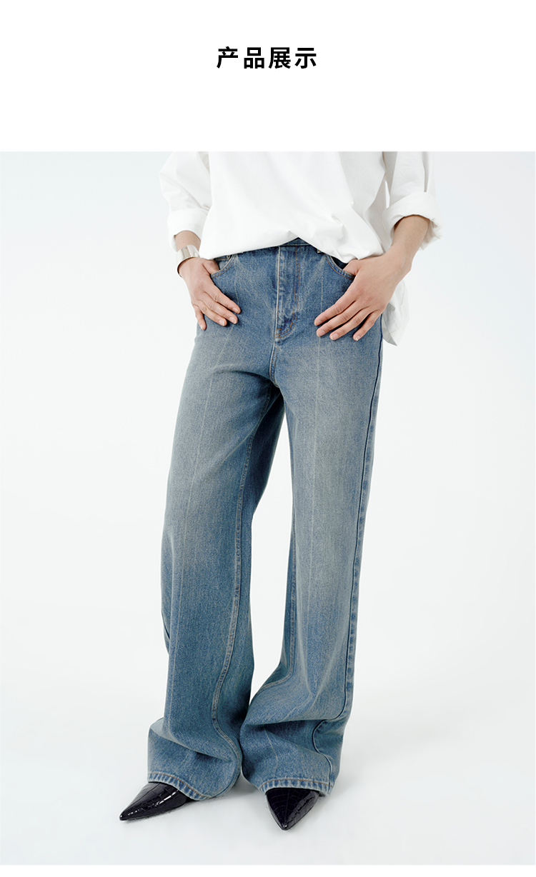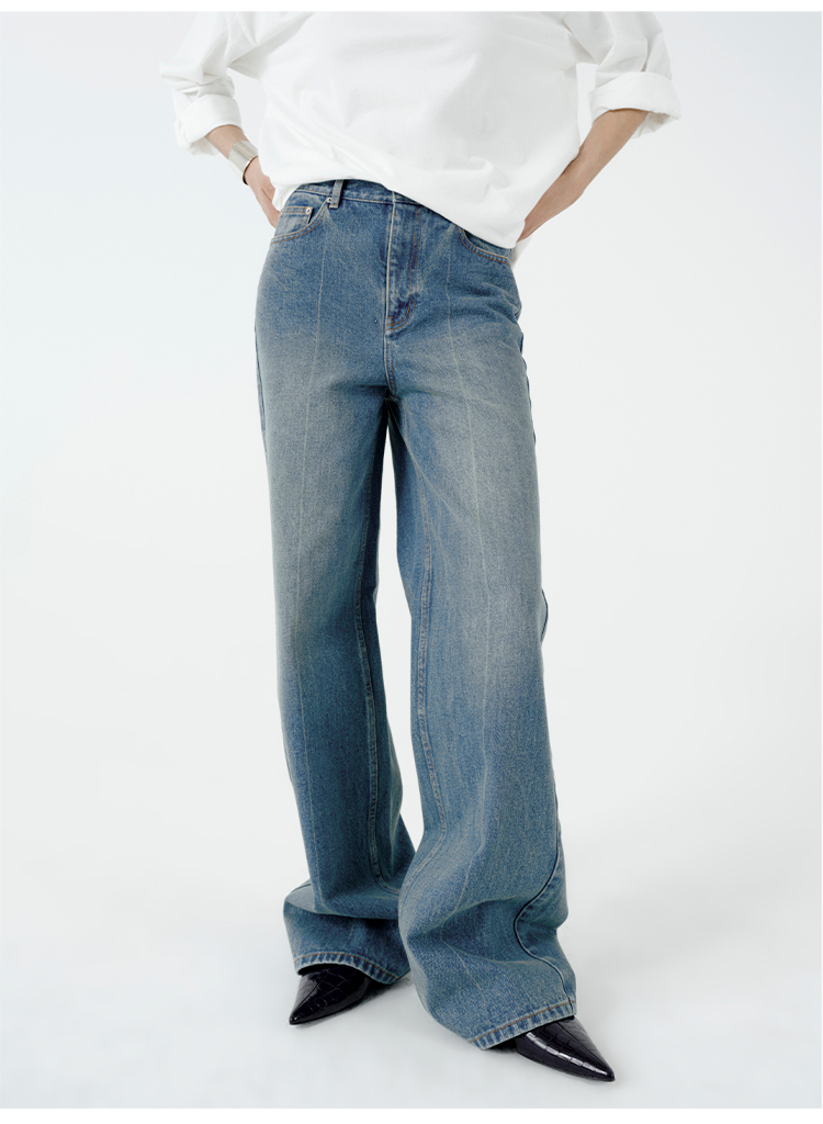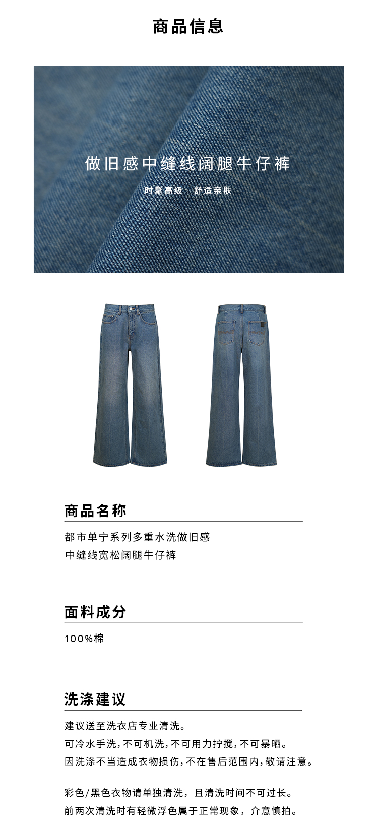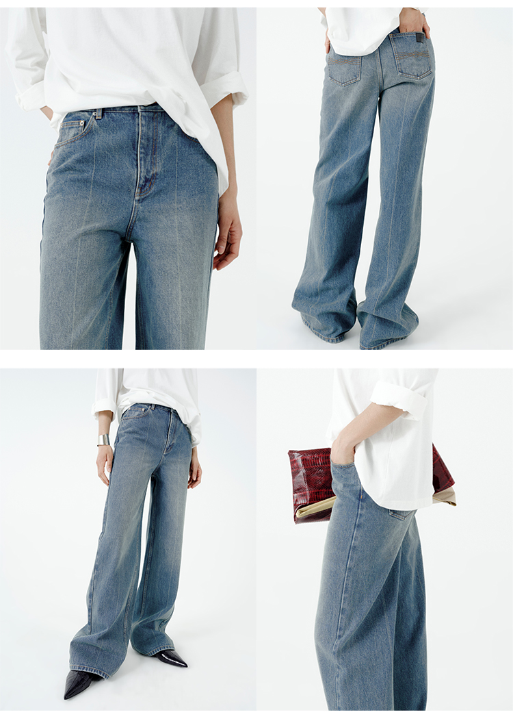 HIDEMI 都市单宁系列多重水洗做旧感中缝线宽松阔腿牛仔裤