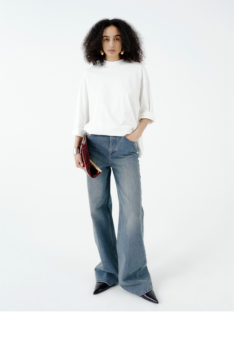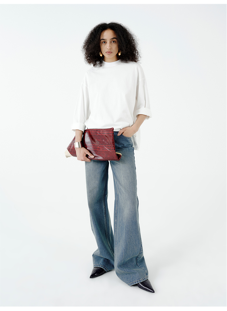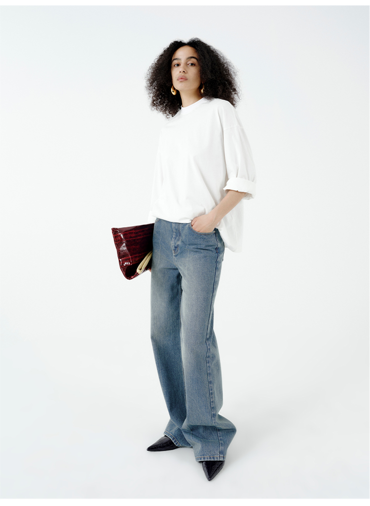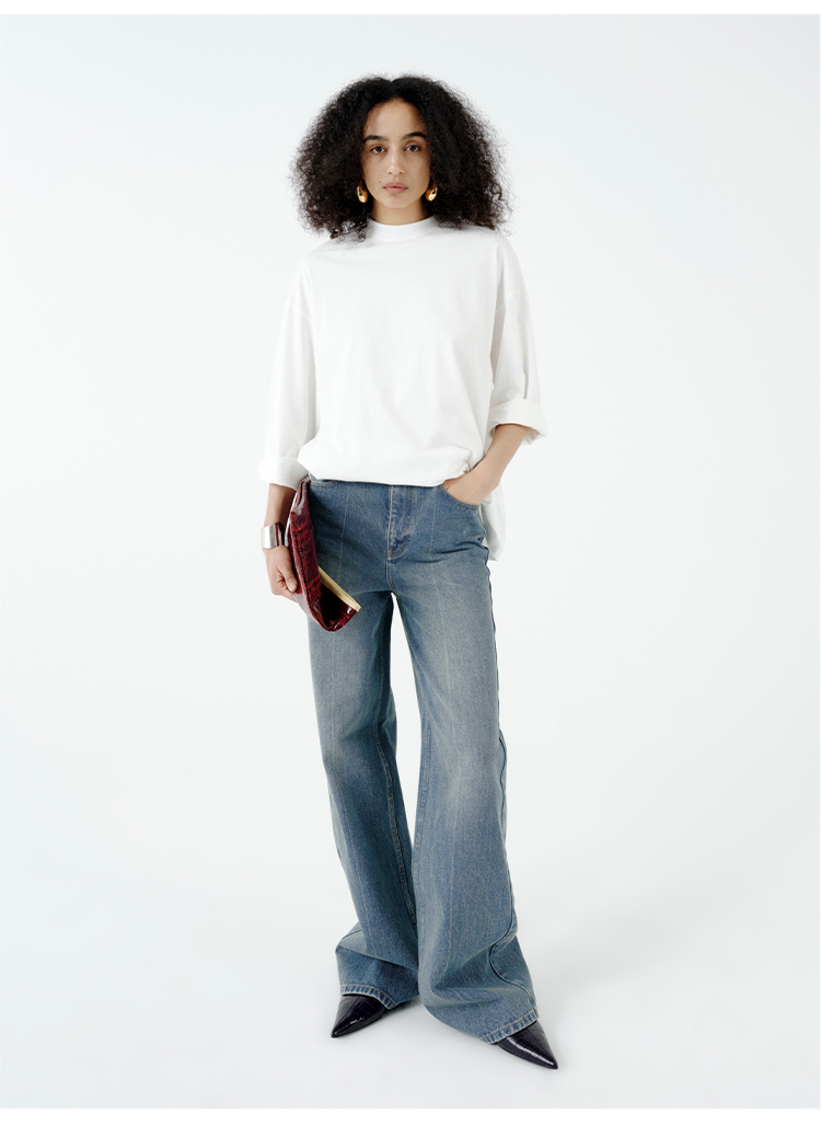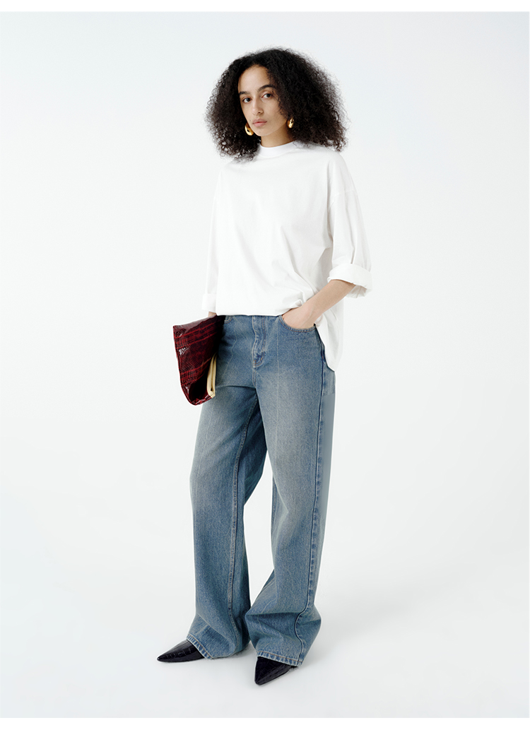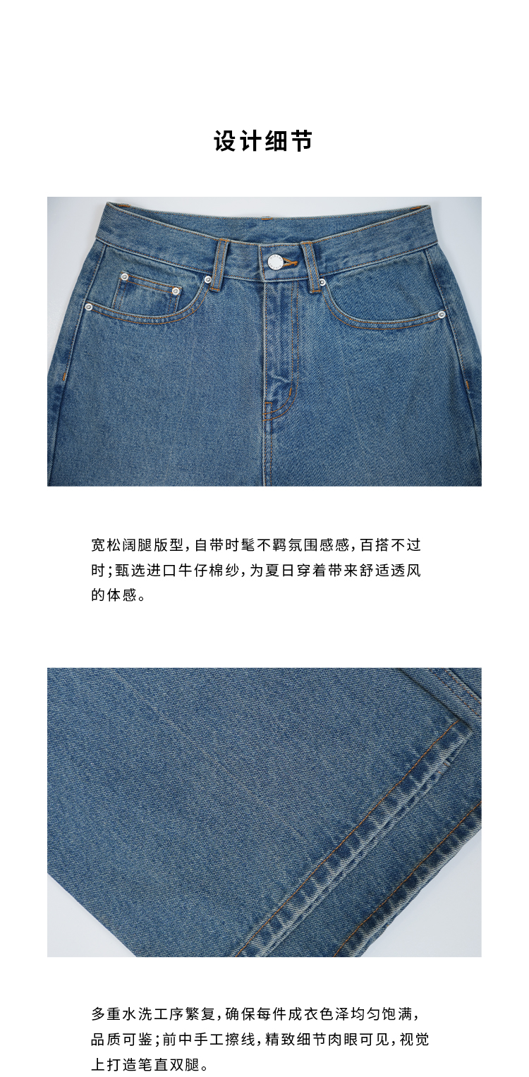 HIDEMI 都市单宁系列多重水洗做旧感中缝线宽松阔腿牛仔裤