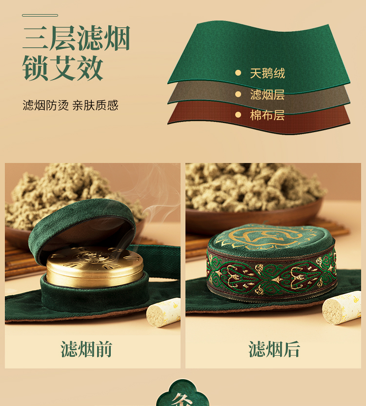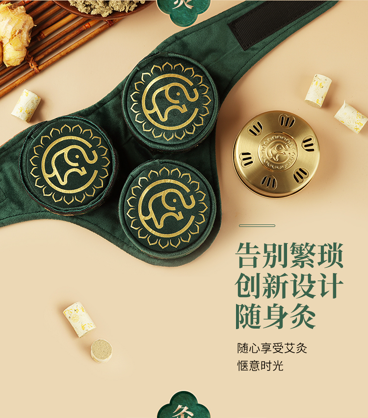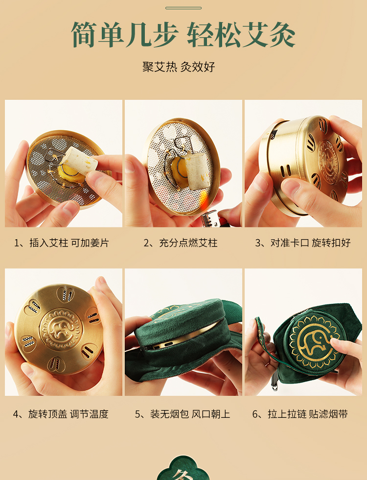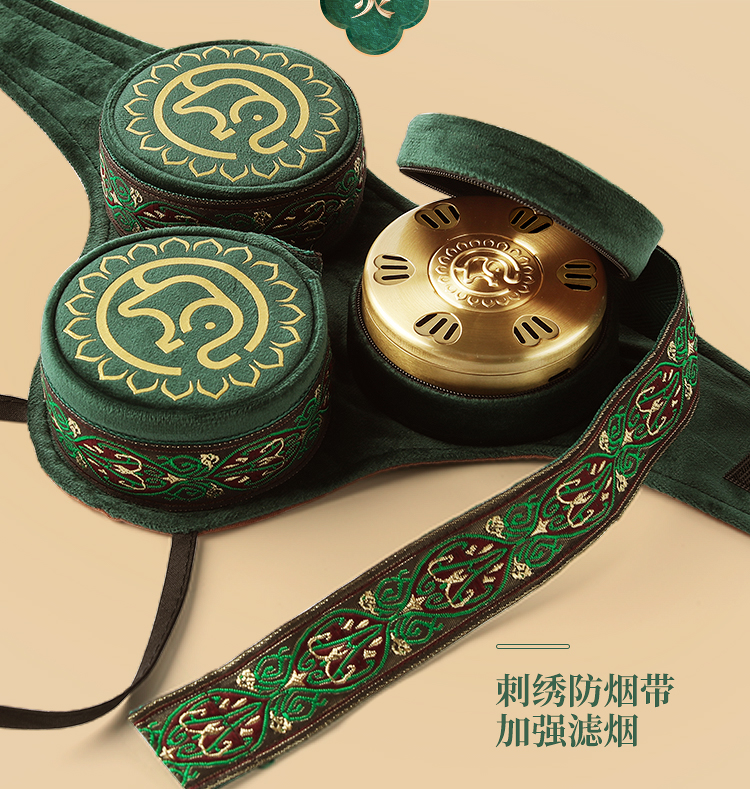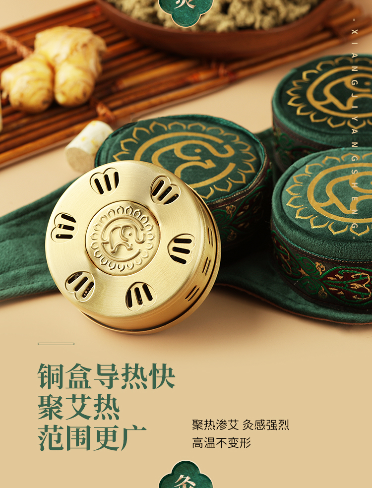 【膝盖三联】艾灸盒/套装--54柱艾柱+铜盒+布套+穴位图/无烟艾灸套装/随身灸