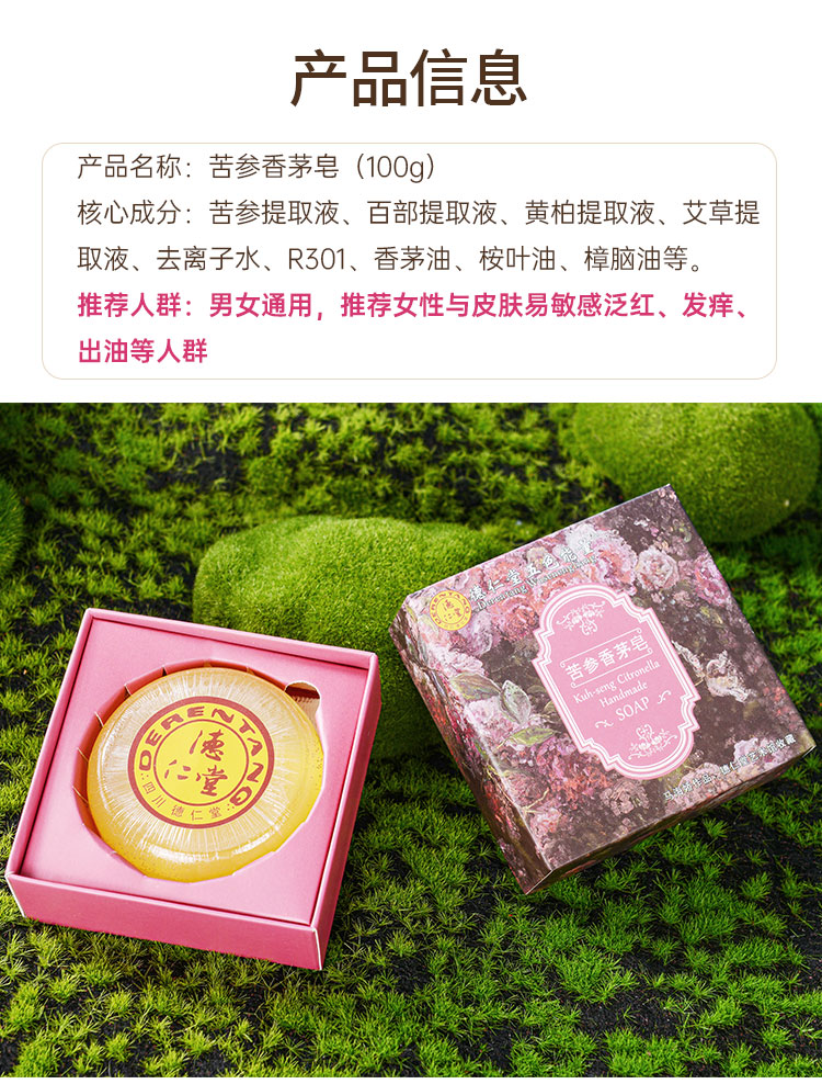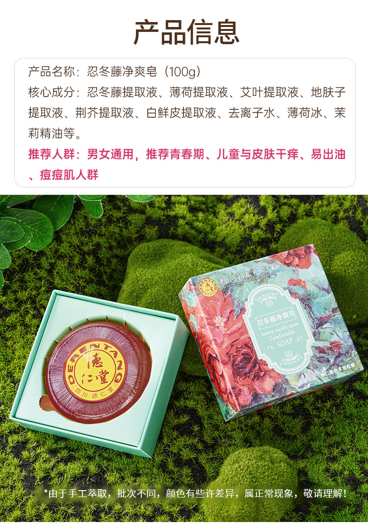 德仁堂 净螨控油精油皂 植物草本香皂 忍冬藤净爽皂 苦参香茅皂