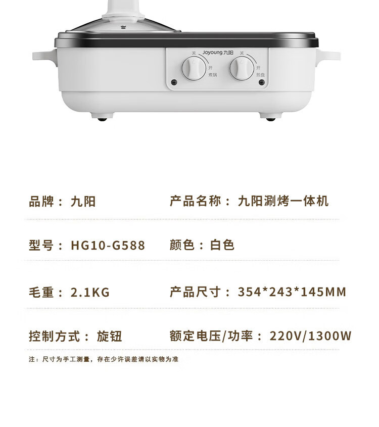 九阳1-2人涮烤一体锅HG10-G588【分仓直发,72小时发货,周末节假日不发货】