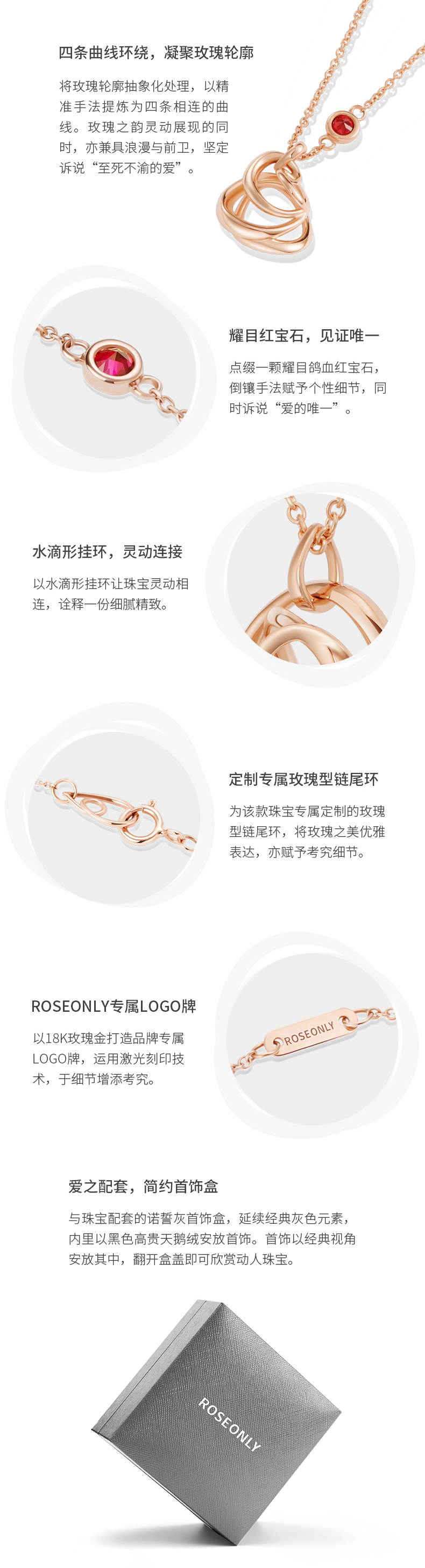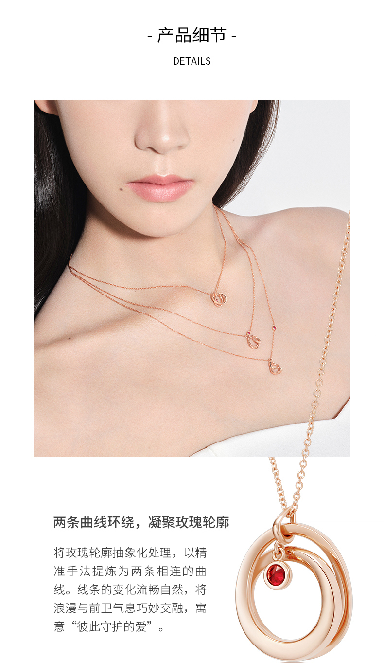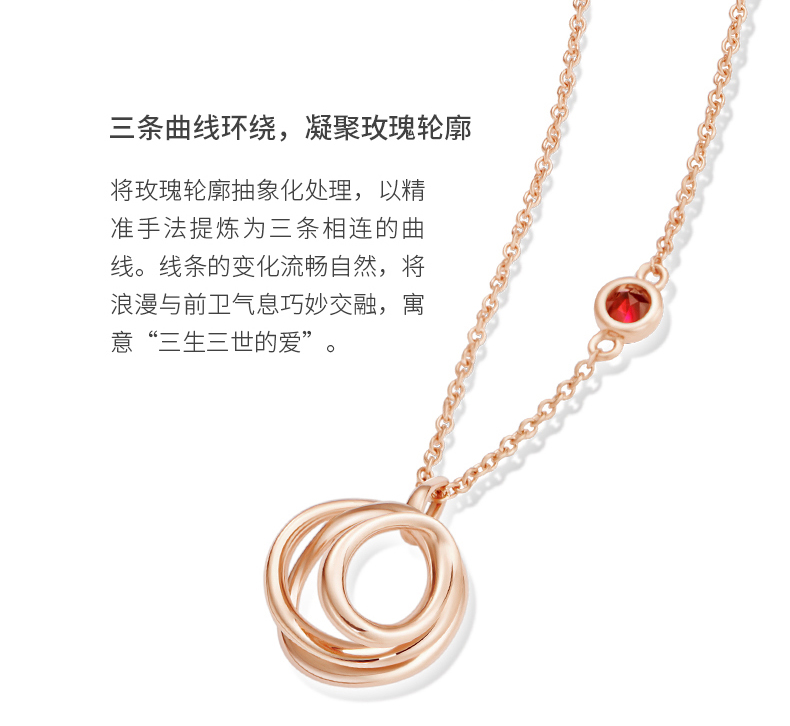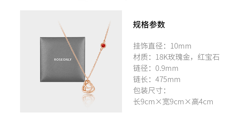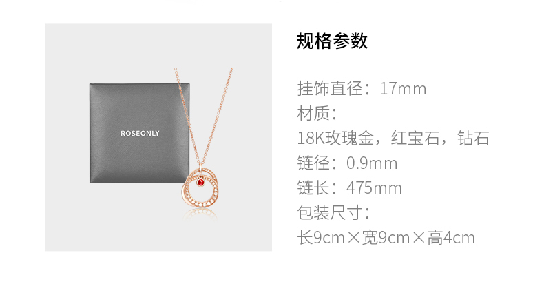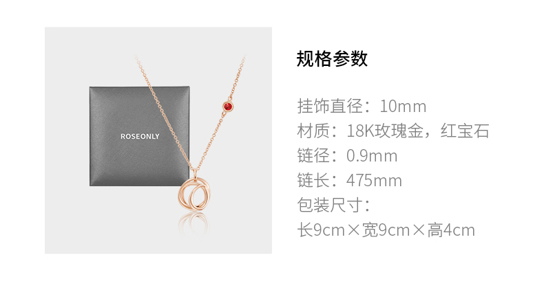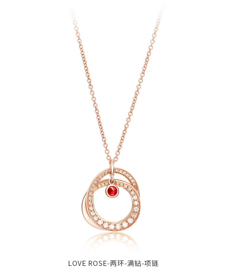 ROSEONLY 玫瑰系列-LOVE ROSE 项链首饰 18K玫瑰金镶红宝镶钻