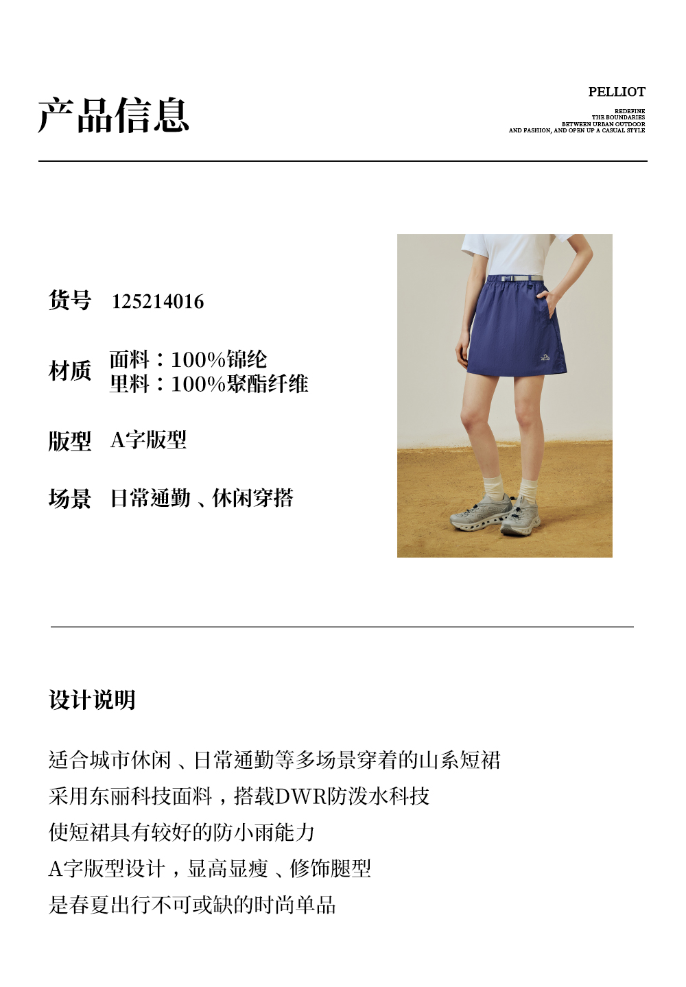 【山系】伯希和露营半身裙女新款户外休闲短裙运动徒步透气裙子