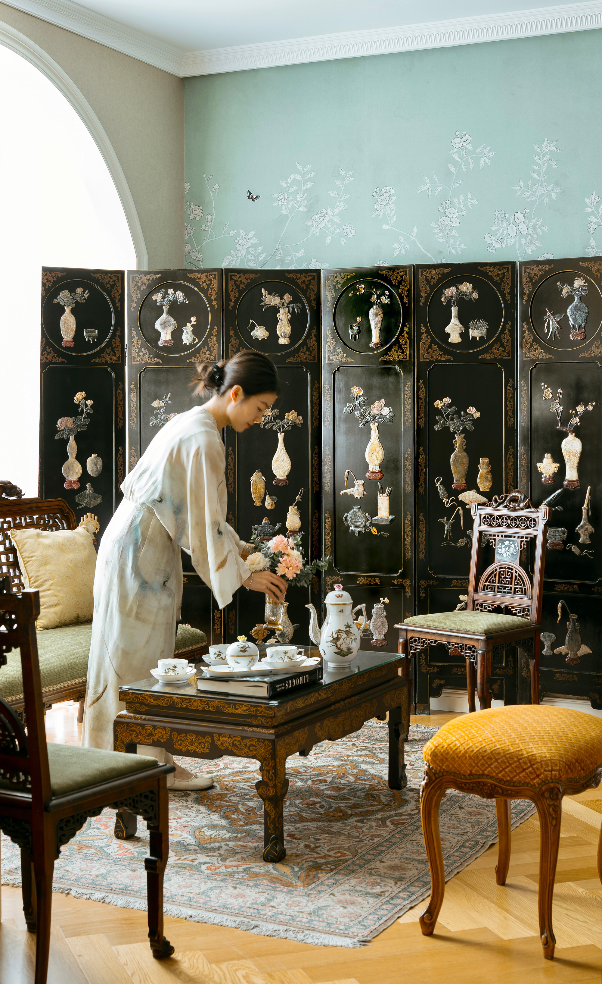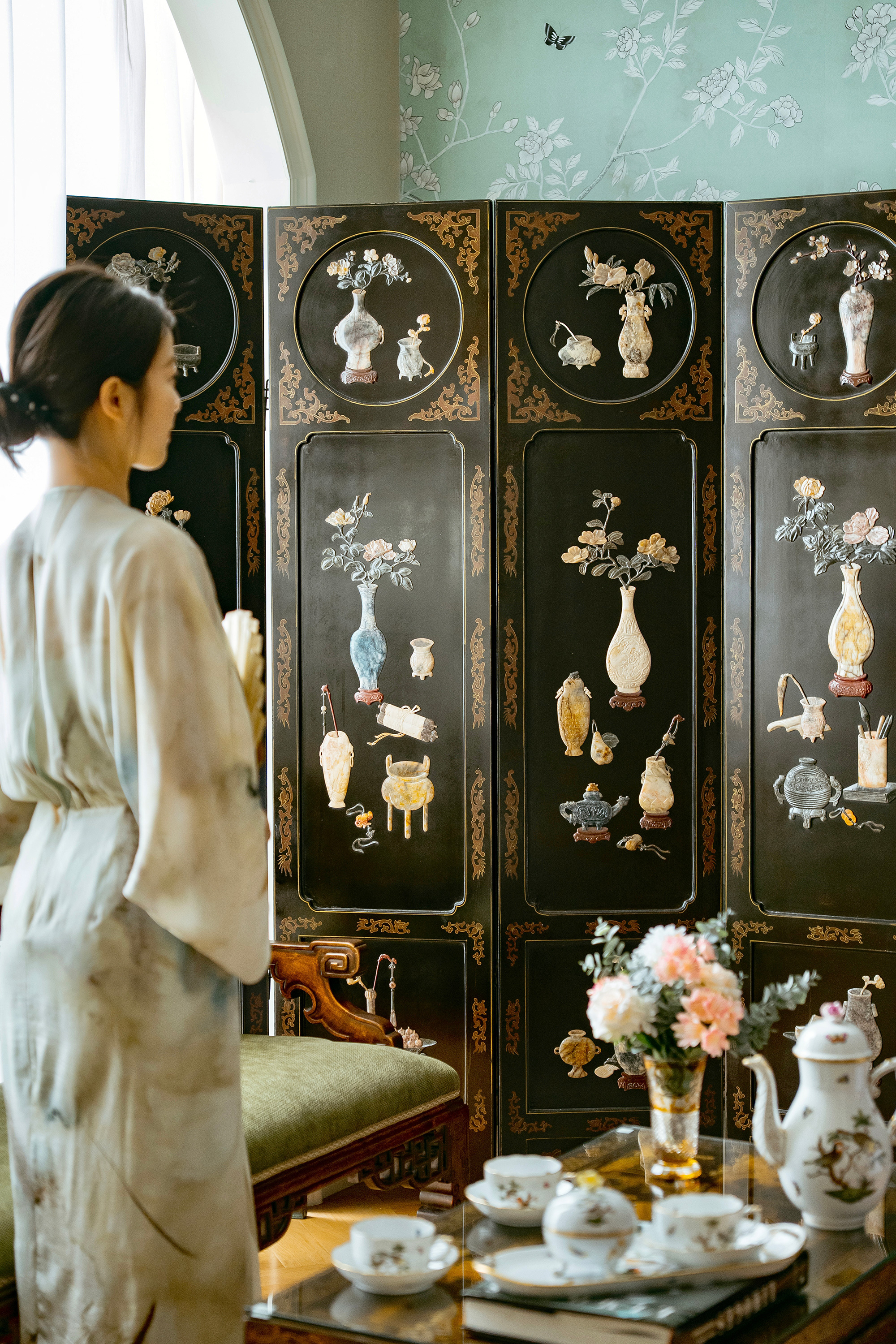 尺寸:总长240厘米(每扇约40厘米),高182.9厘米