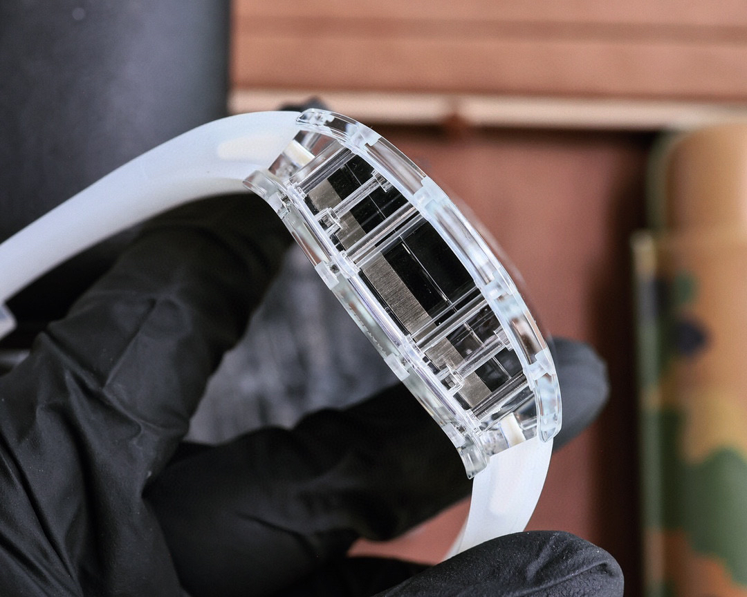 The new watch bezel and back cover are made of crystal material, while the middle case is made of artificial crystal material. Each case is truly luxurious, crystal clear, pure and transparent, and the flow of light and shadow fully showcases its personality.