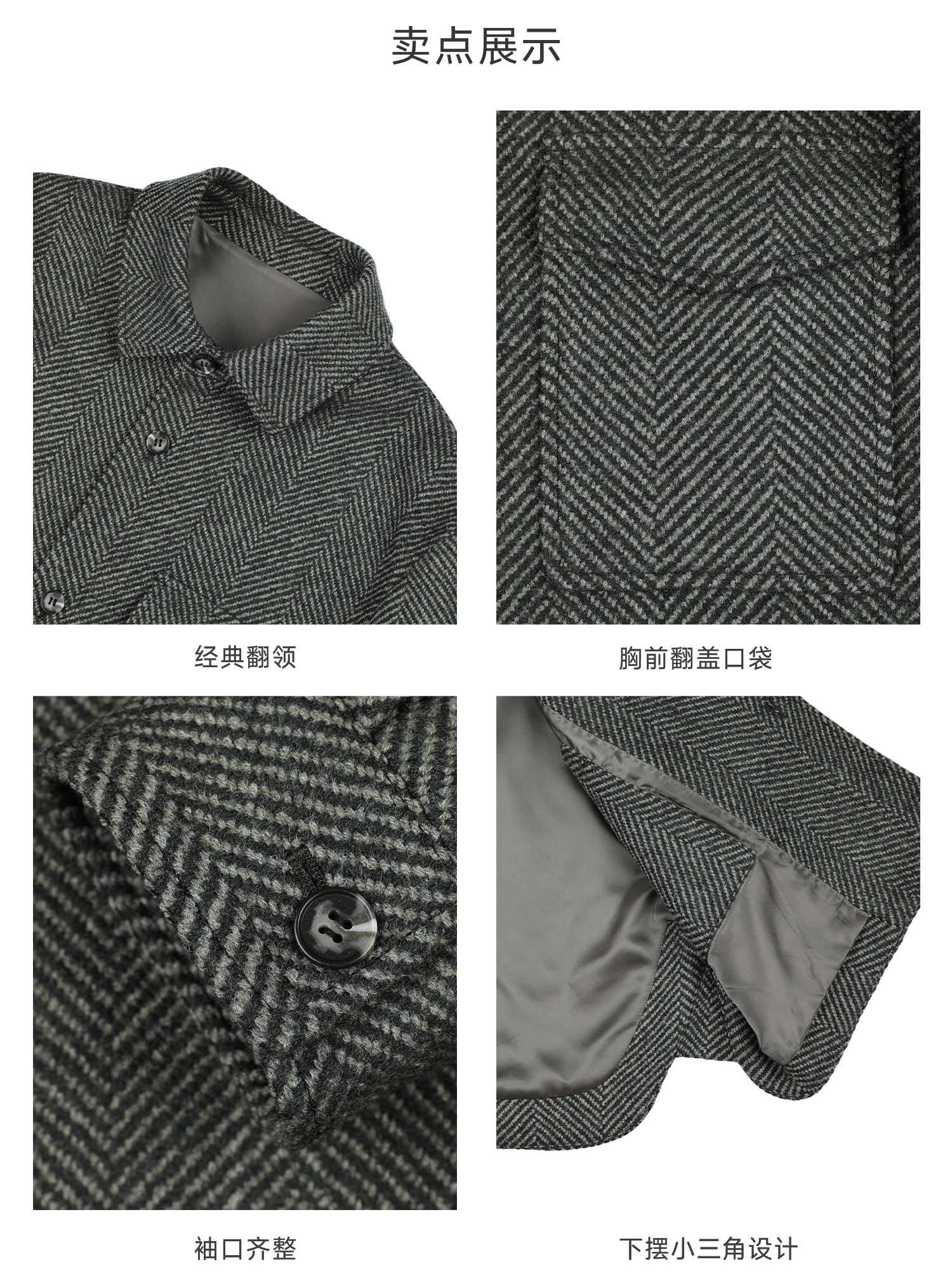 callisto高智系列灰色绵羊毛混纺外套