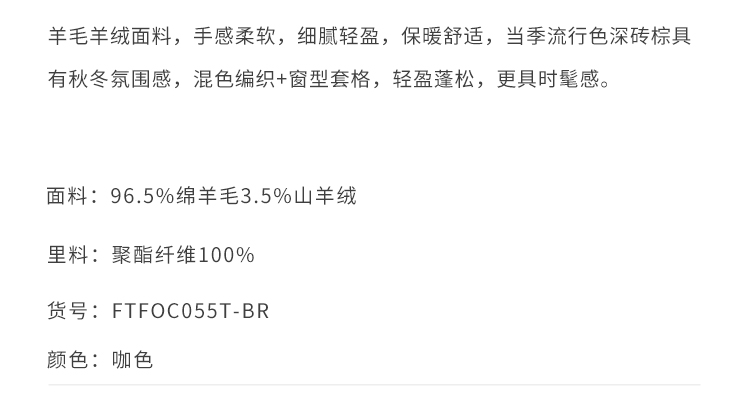 callisto藏青绵羊毛混纺无领面大衣 FSFEC076C NA