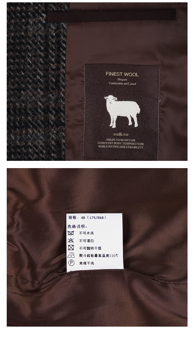 callisto灰色绵羊毛混纺西服 SSBWJ001C