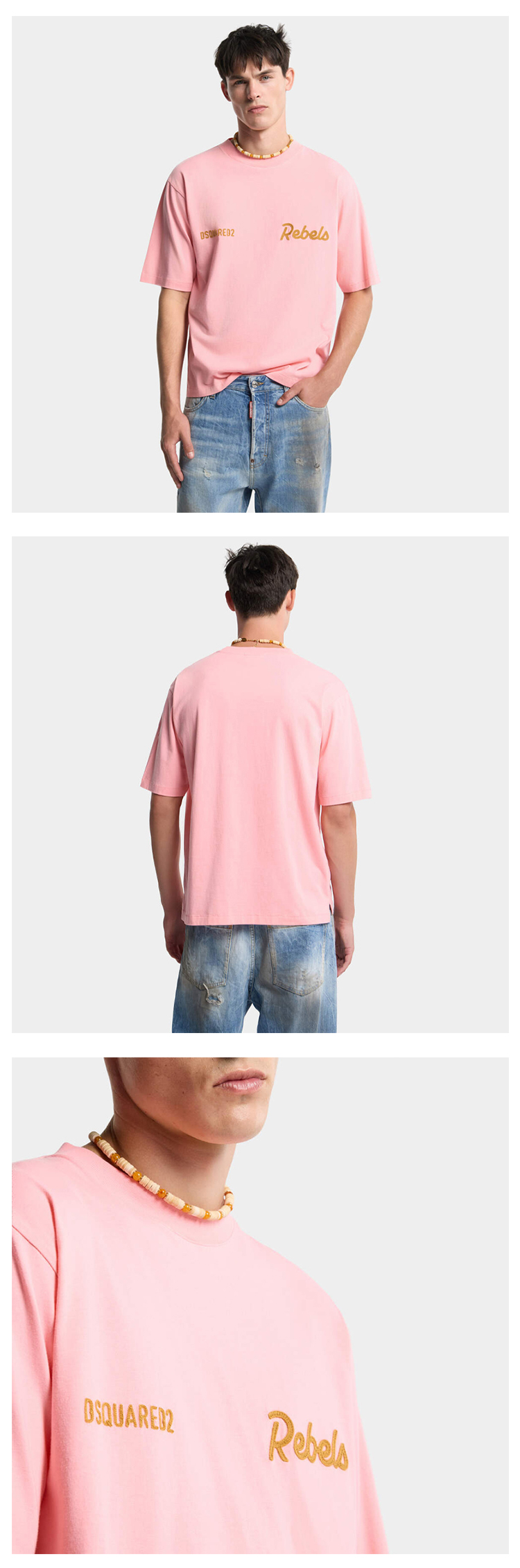 DSQUARED2 男士字母徽标刺绣棉质圆领短袖T恤 粉红色 S74GD1542 D20108 249