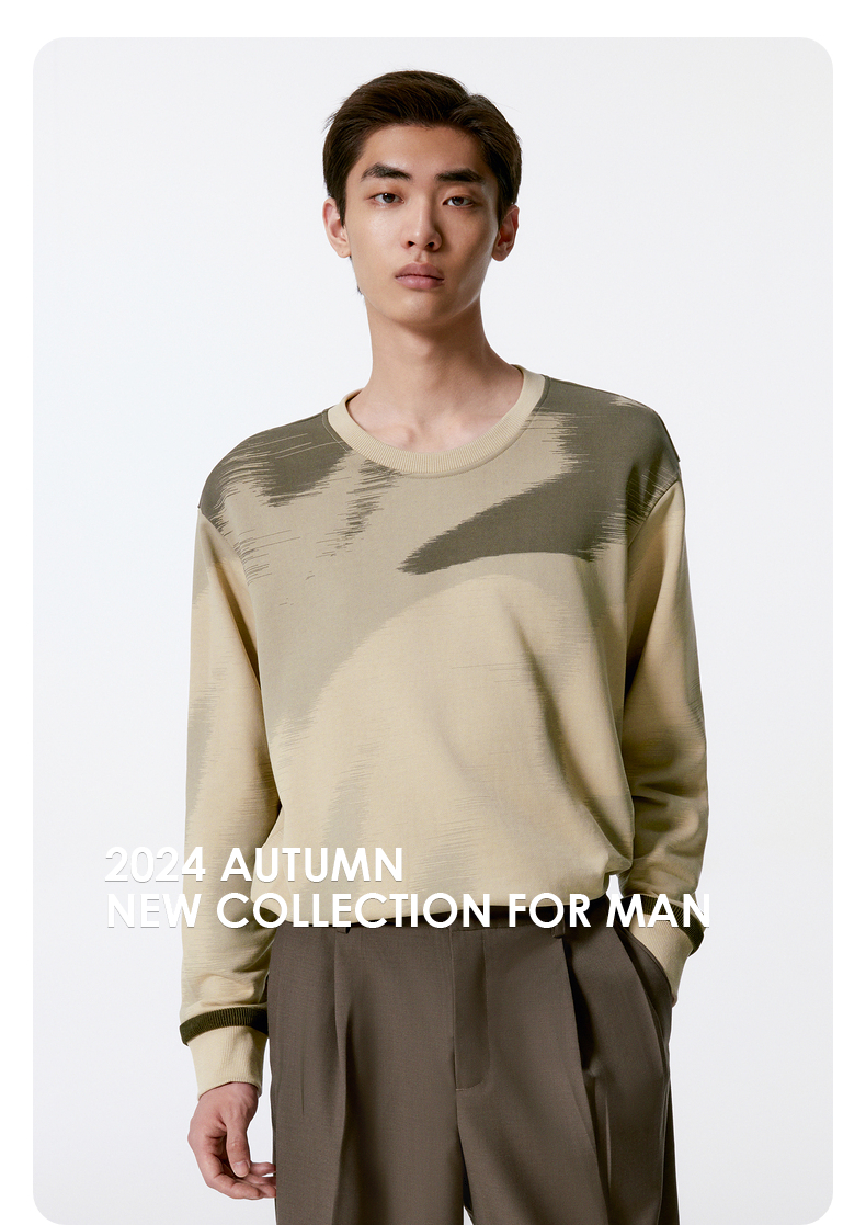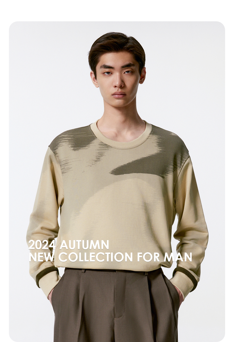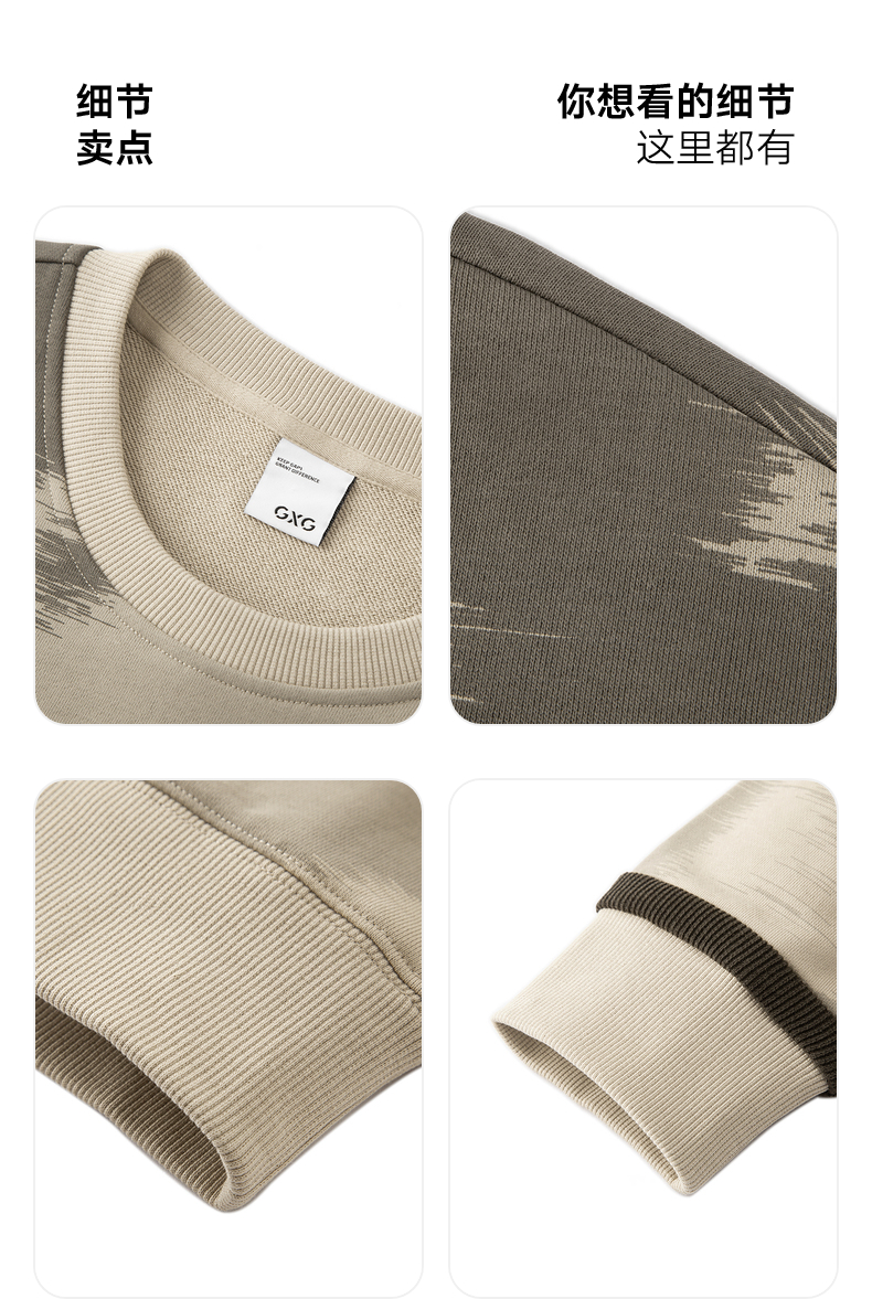 GXG男装 卡其色满身渐变休闲时尚圆领卫衣男士 秋季热卖G24X313002