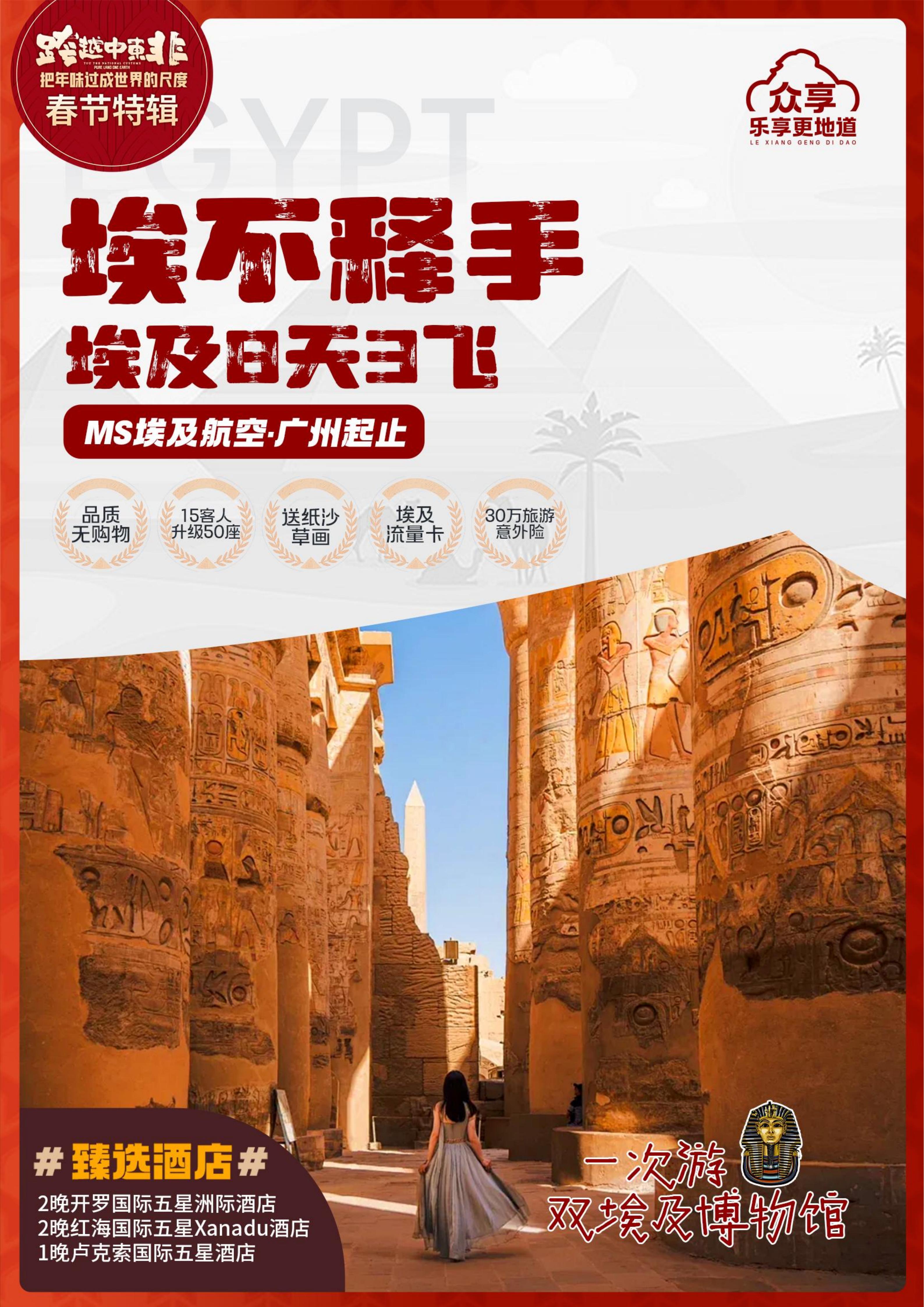 【春节】<埃及开罗+孟菲斯+赫尔格达+卢克索8天3飞>全程国际五星酒店