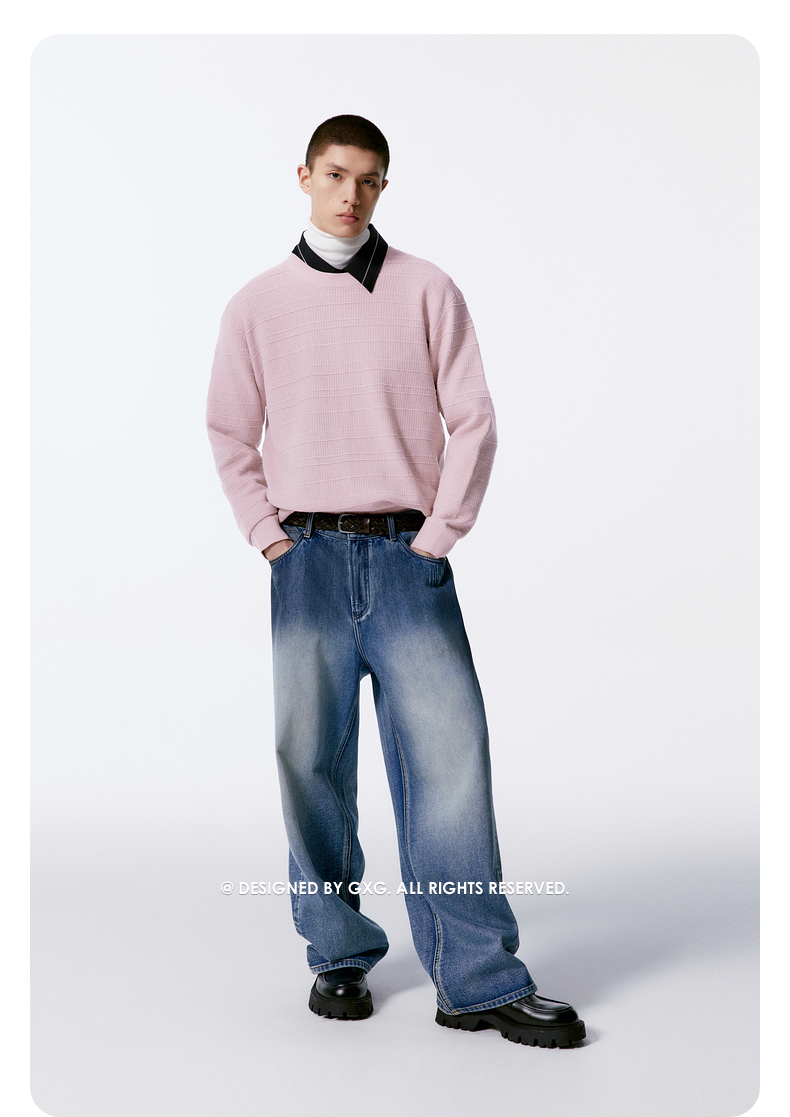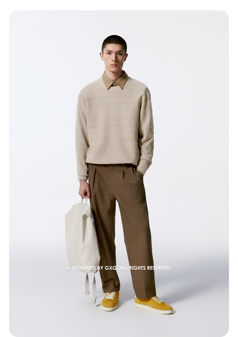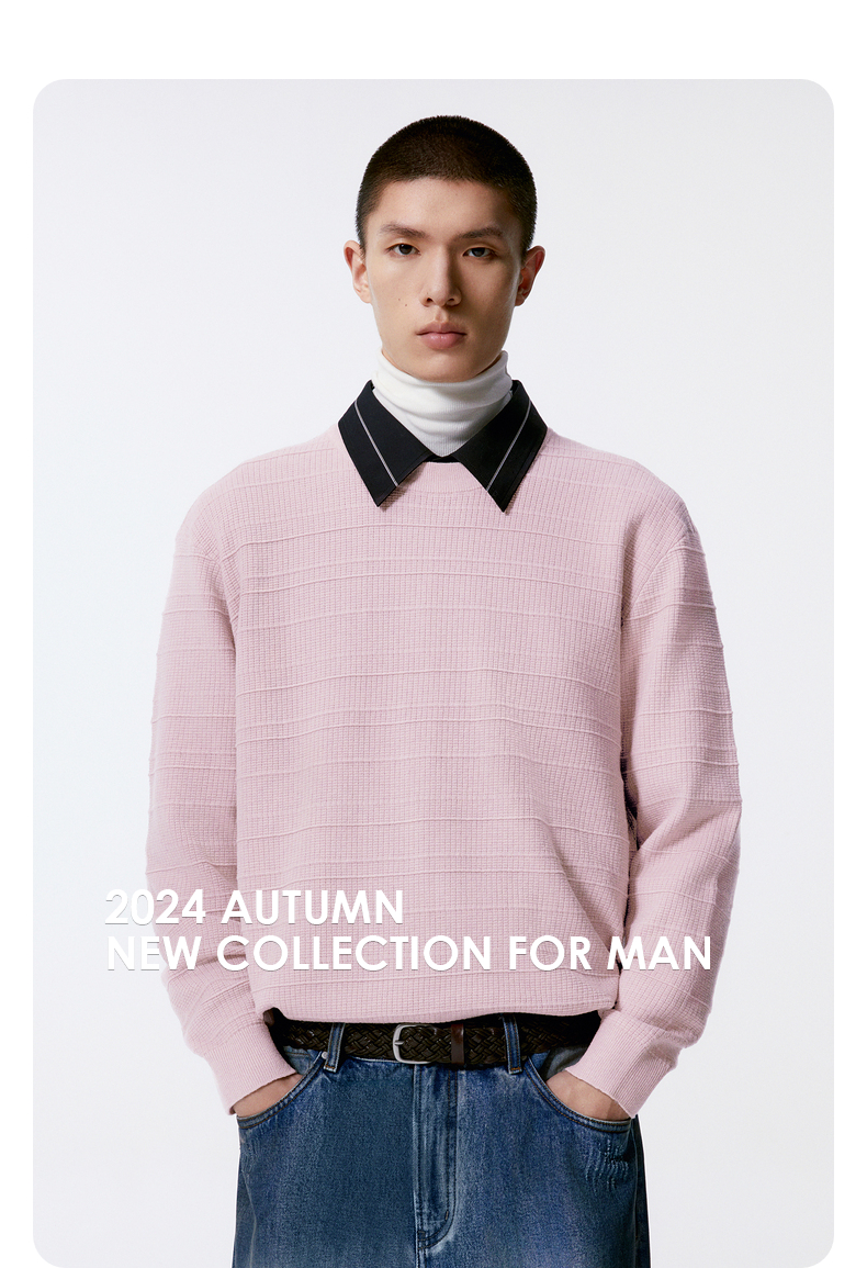 GXG男装 羊毛混纺针织衫双色男士毛衣 24年秋G24X203006