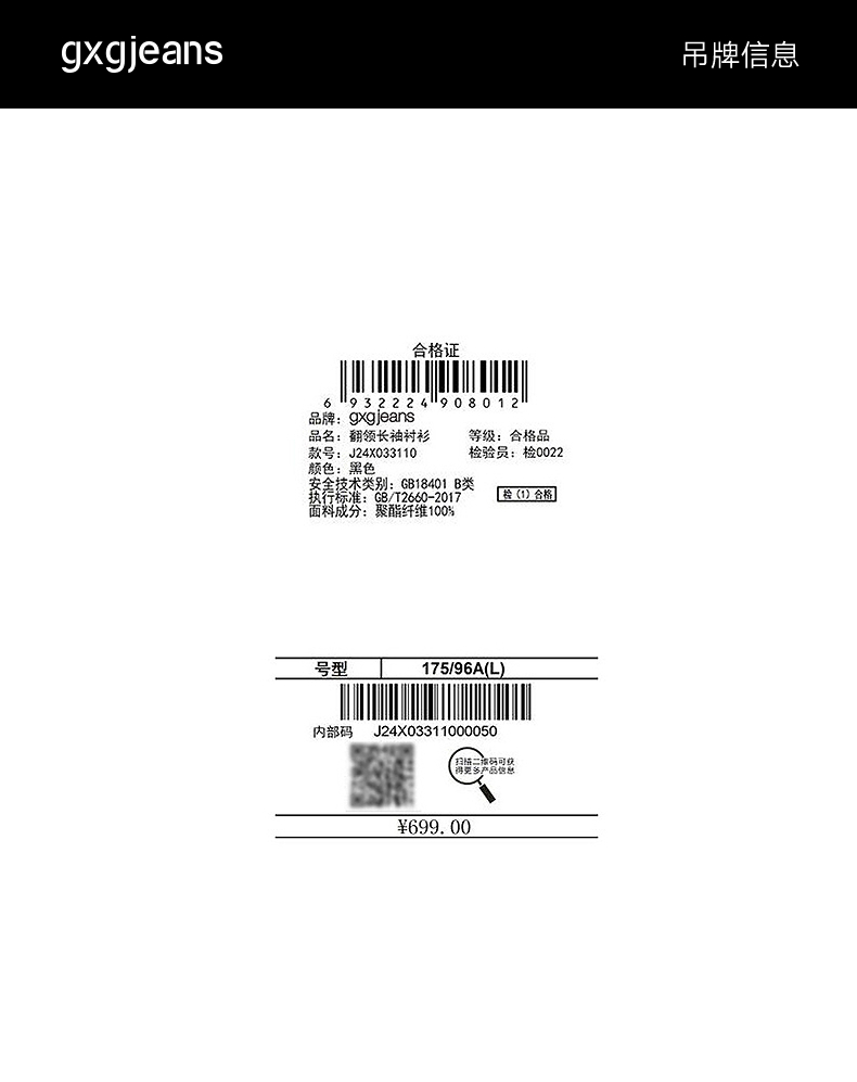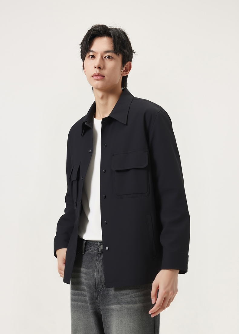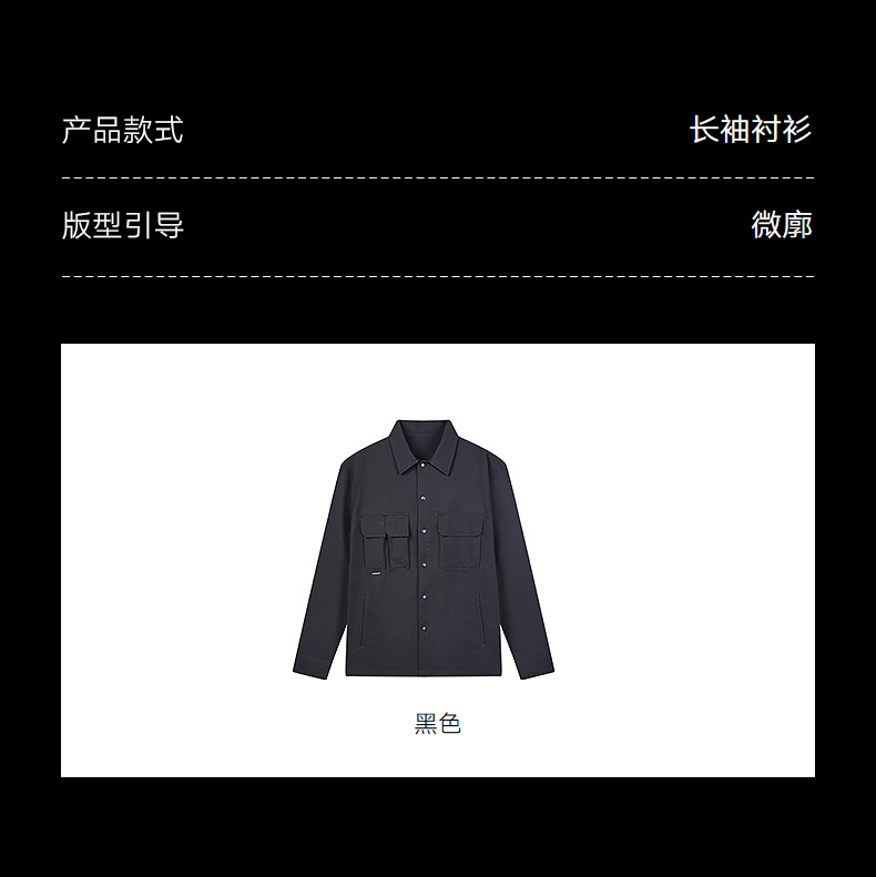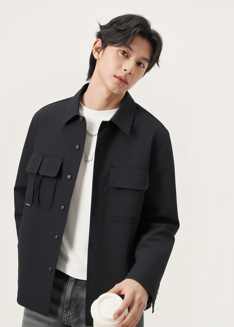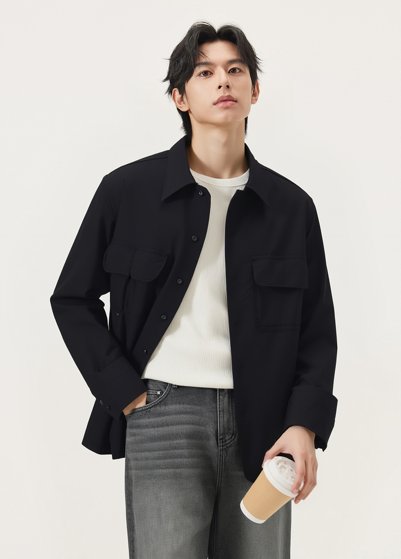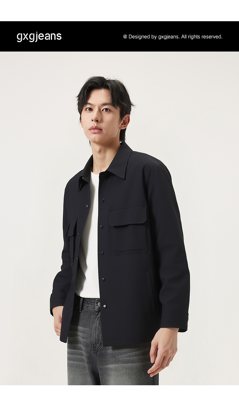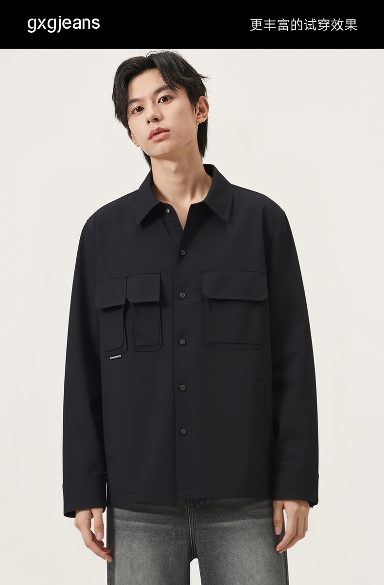 gxg.jeans男装 黑色口袋设计宽松工装翻领长袖衬衫外套 25秋热卖