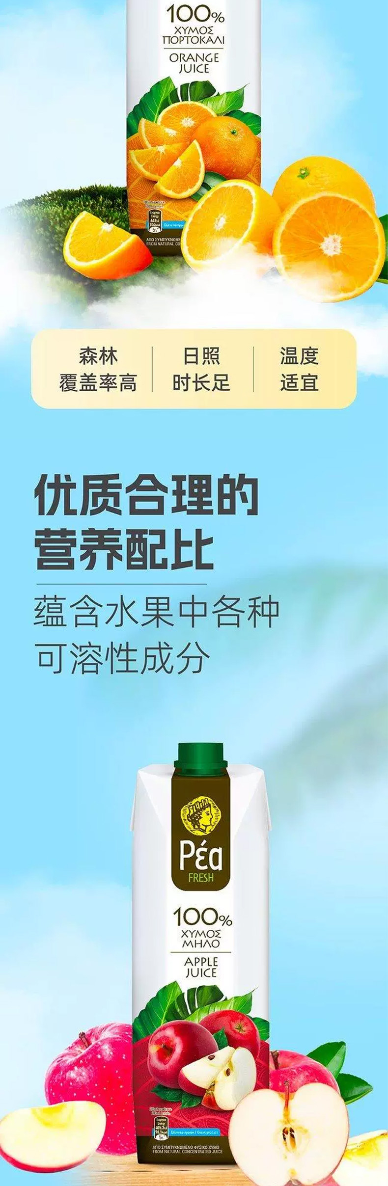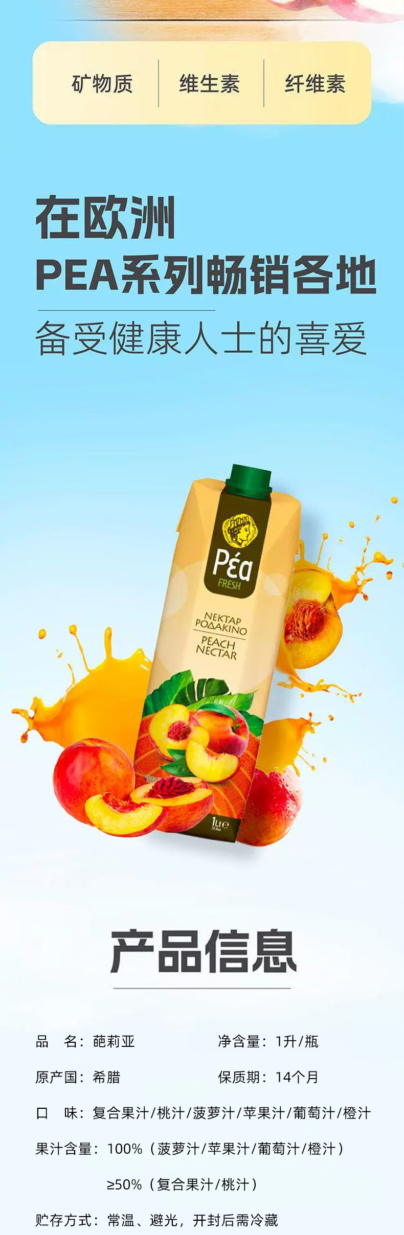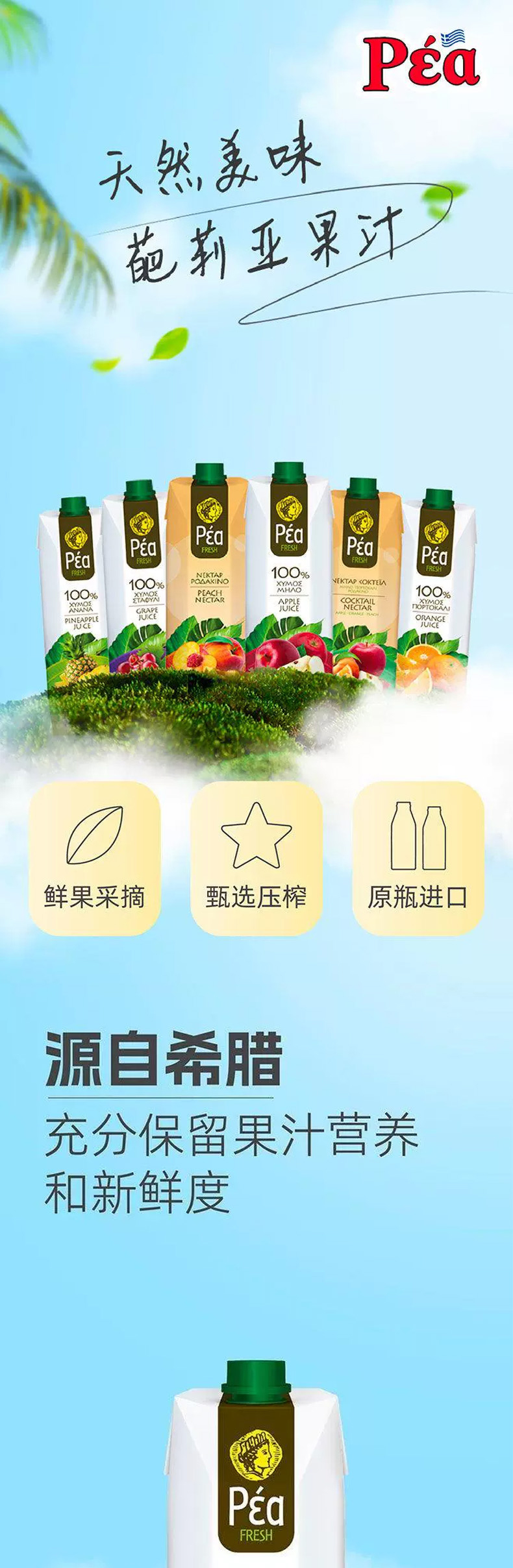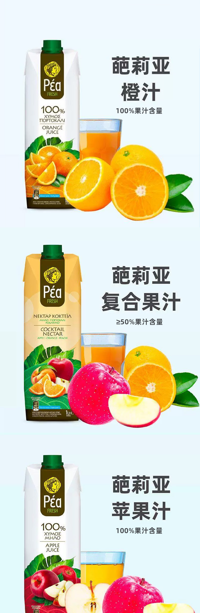 希腊进口葩莉亚果汁|果汁饮料1L【葡萄|橙|苹果|菠萝果汁/桃|复合果汁饮料】