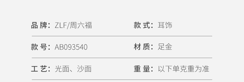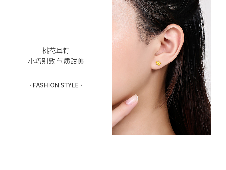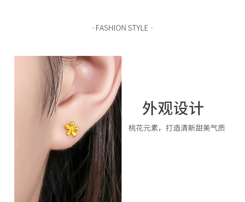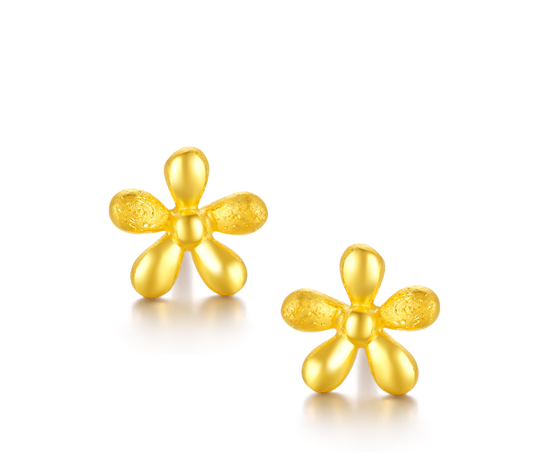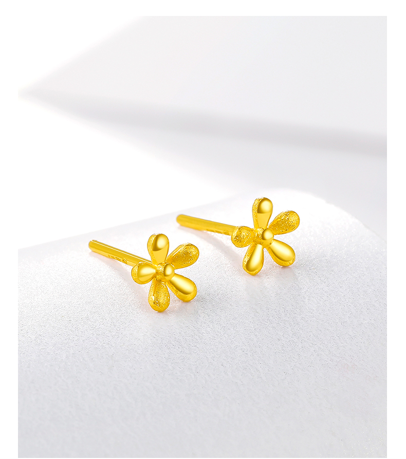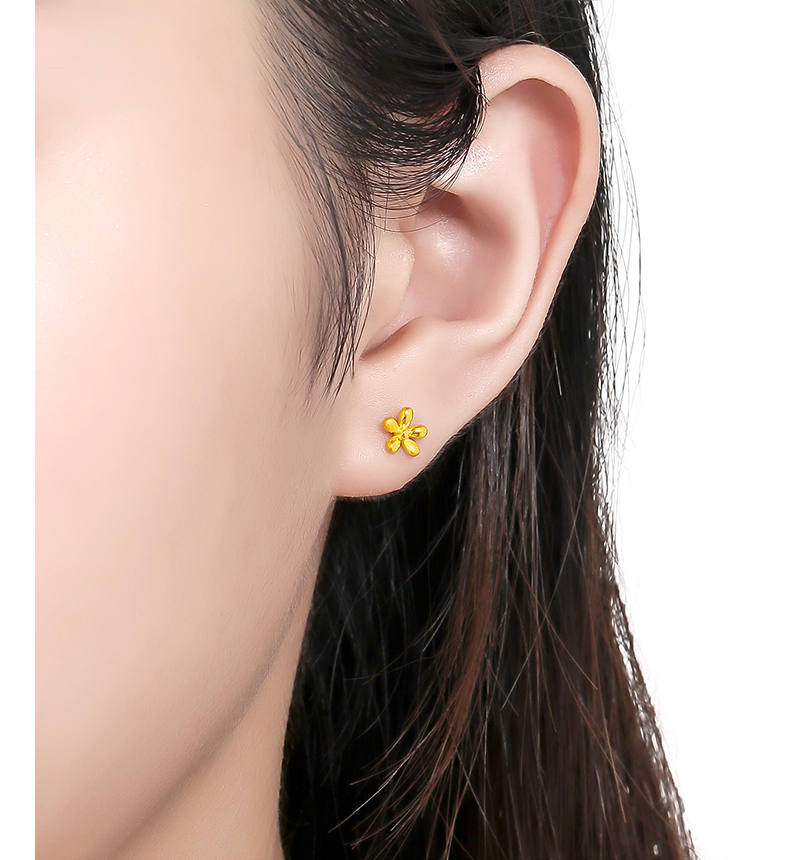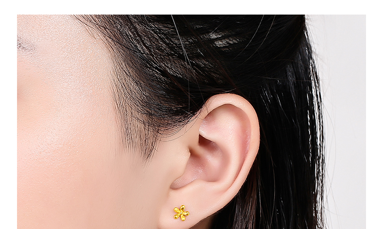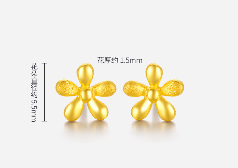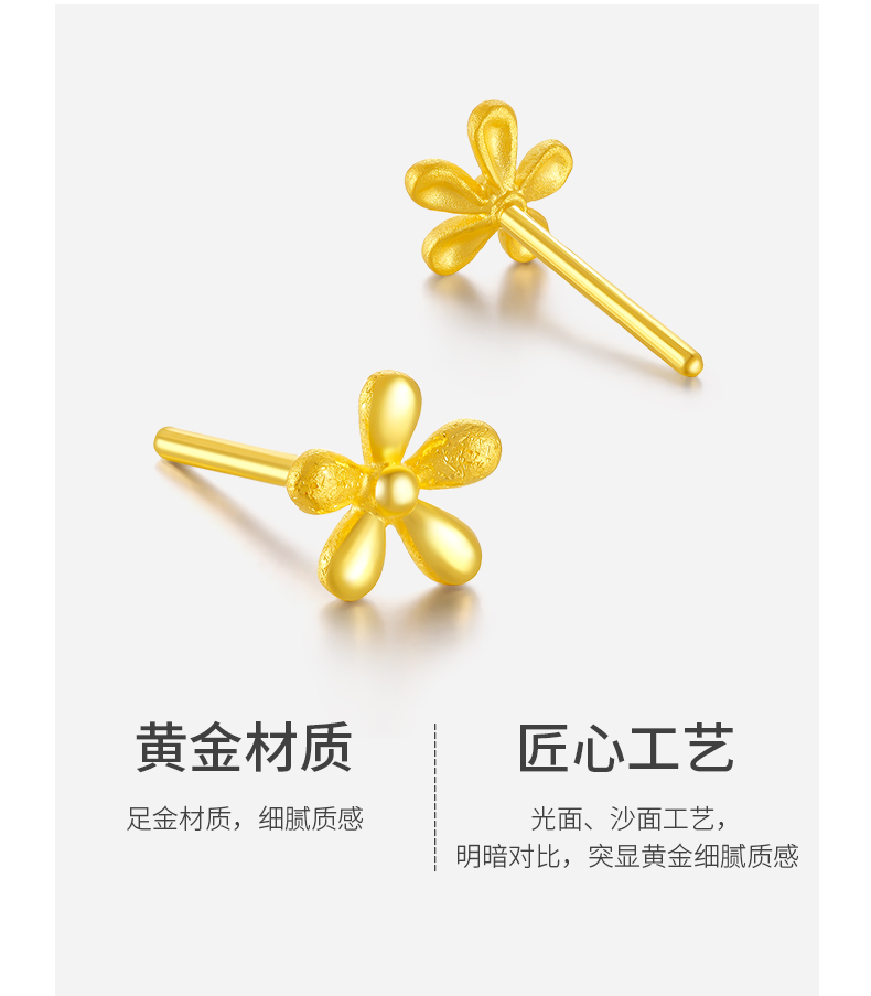 周六福黄金耳饰女款花朵足金时尚小耳钉耳环计价花瓣喷砂面正品