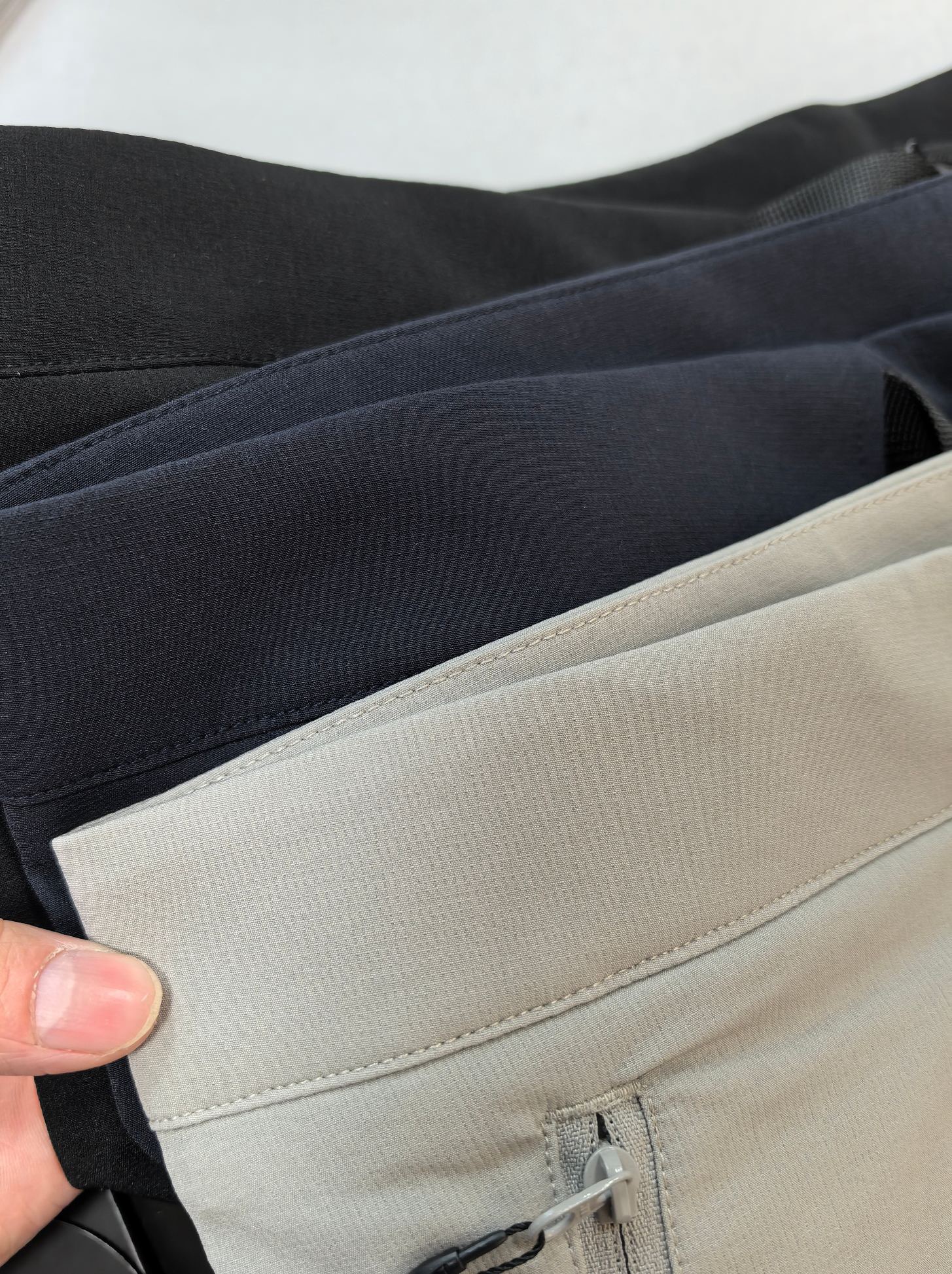户外运动软壳裤,薄款面料,四面弹上身舒服轻松!多拉链口袋设计!内置腰带可调节腰围贴合舒适!