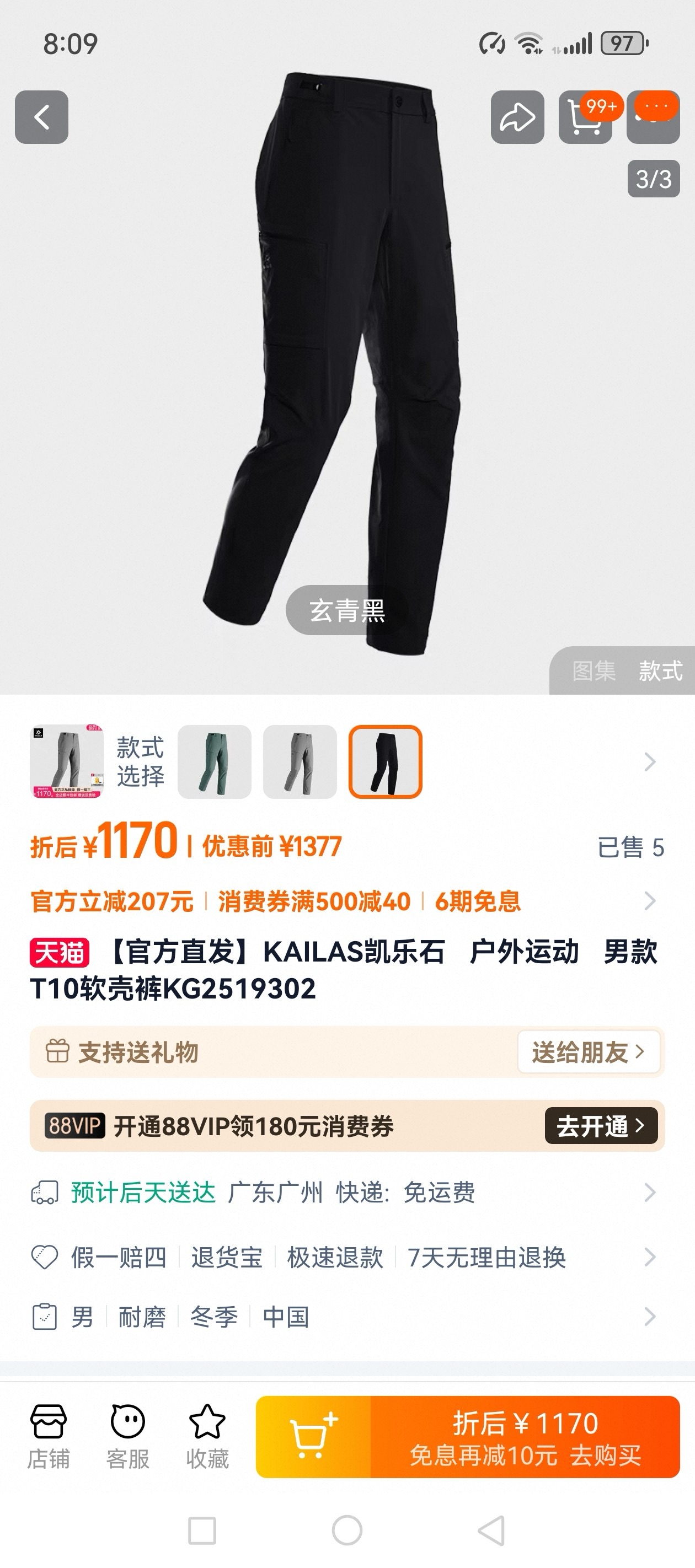 K@ILAS 内置腰带夏季薄款户外运动软壳裤 Z-15208