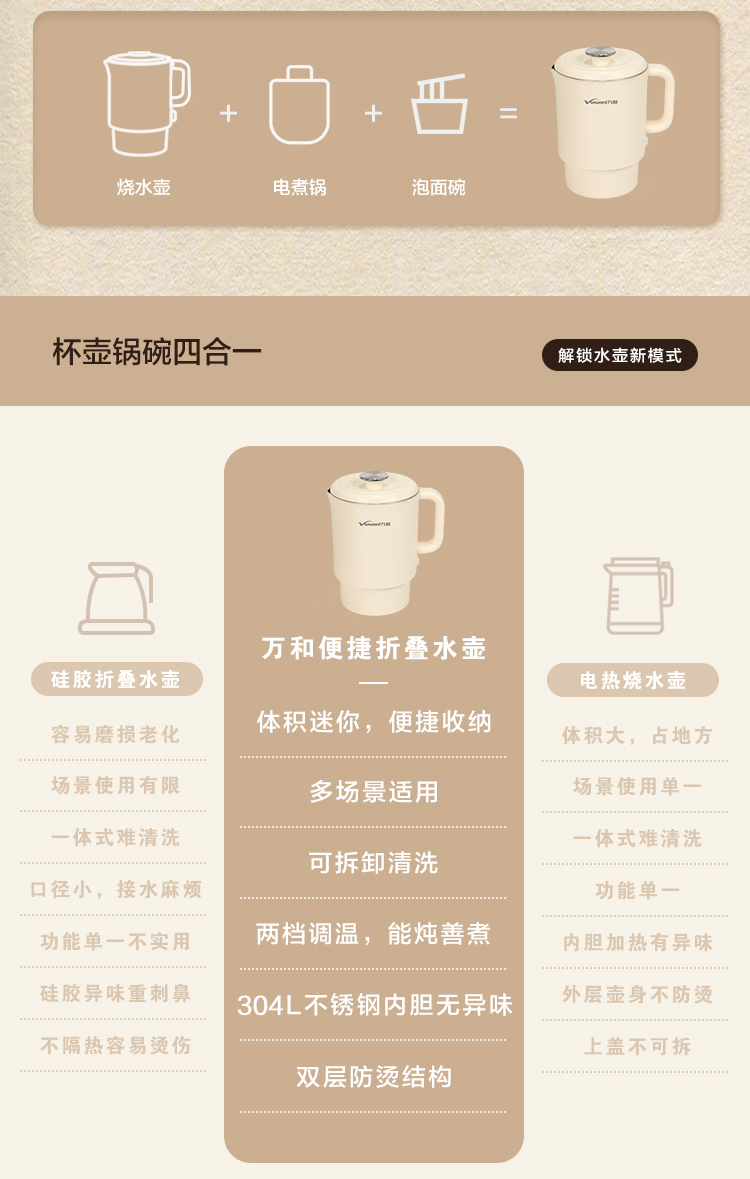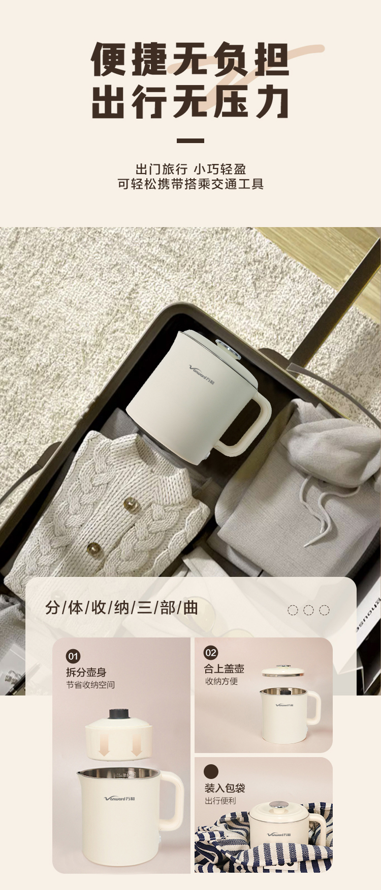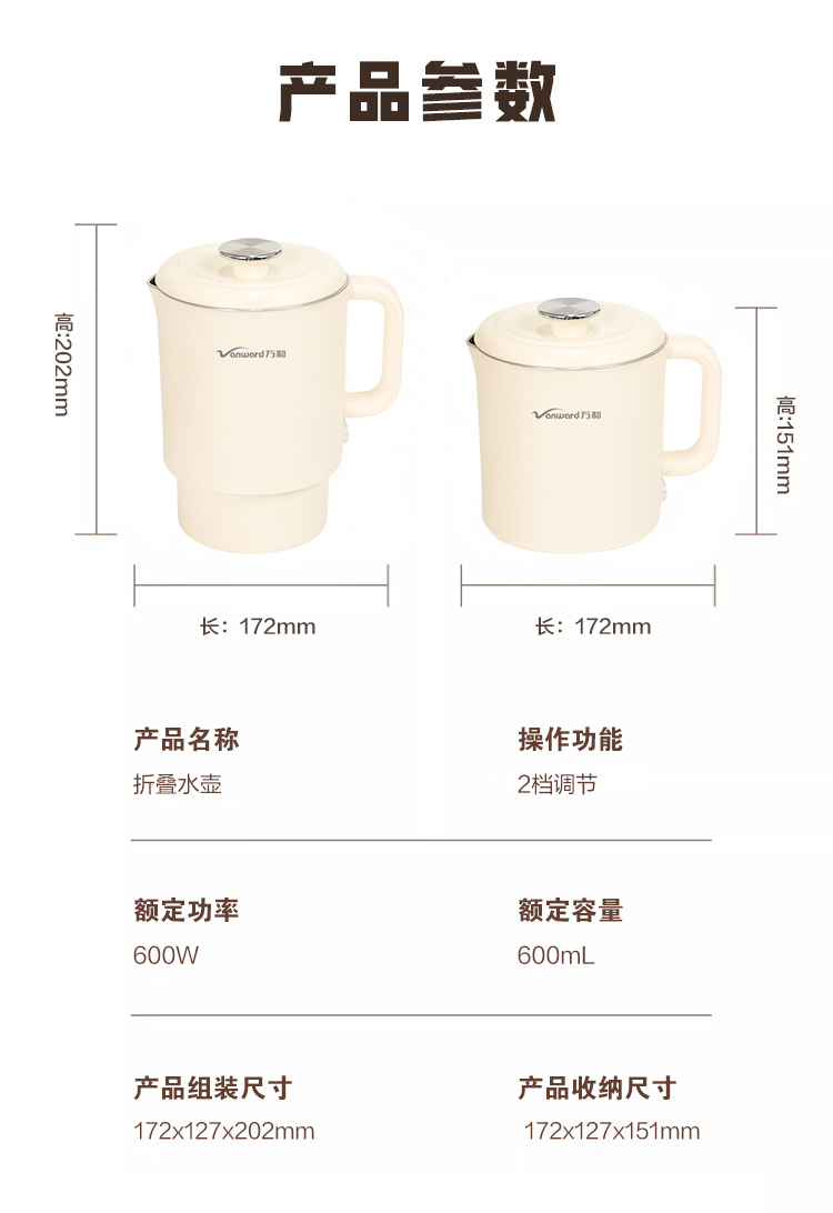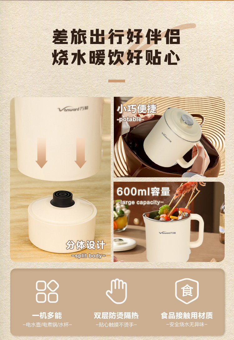 万和便携电热水壶DZG-ZL06A(304W)