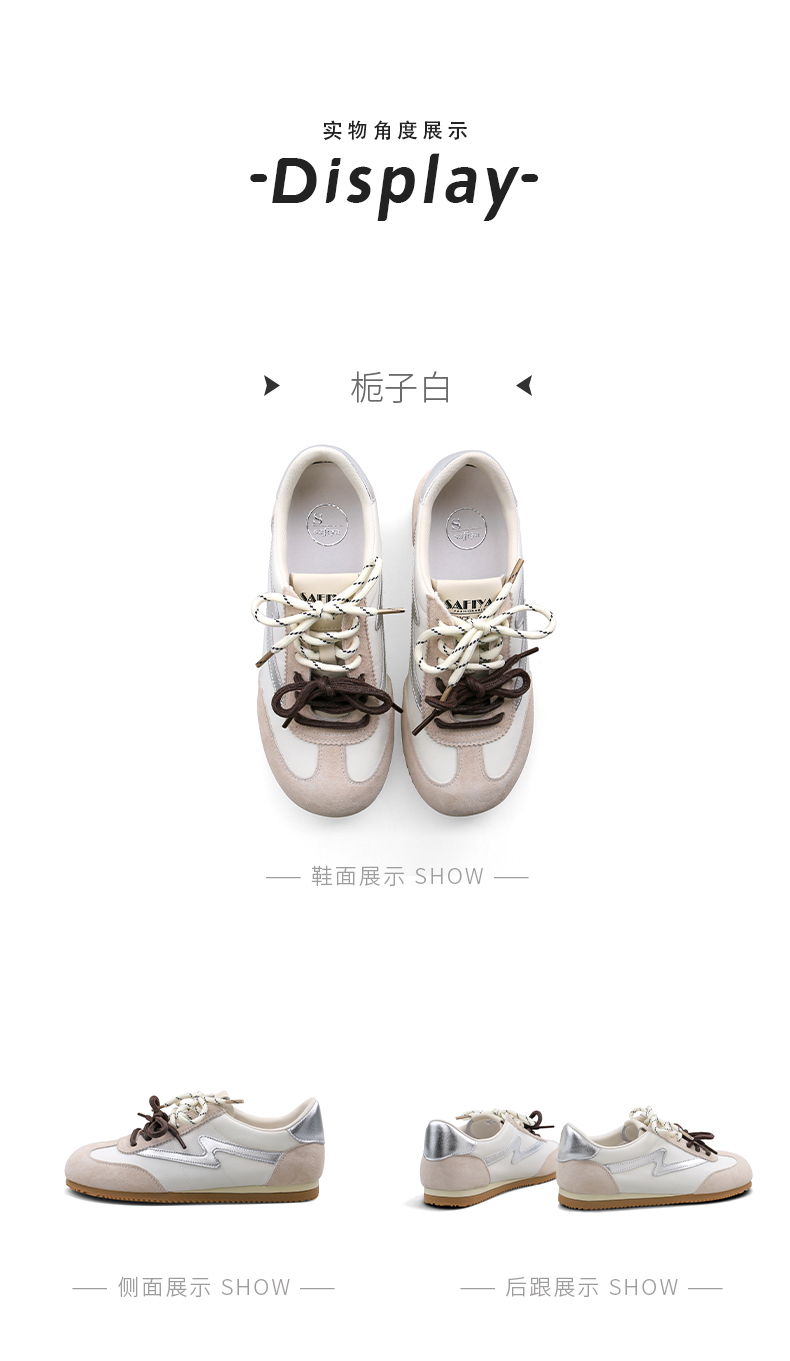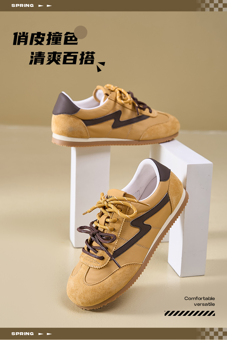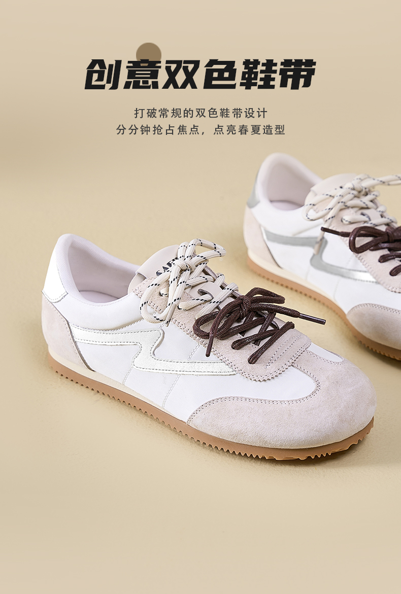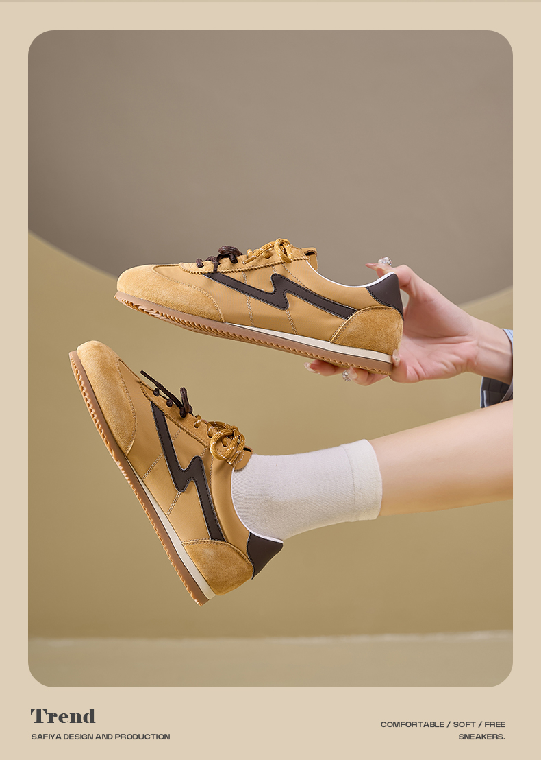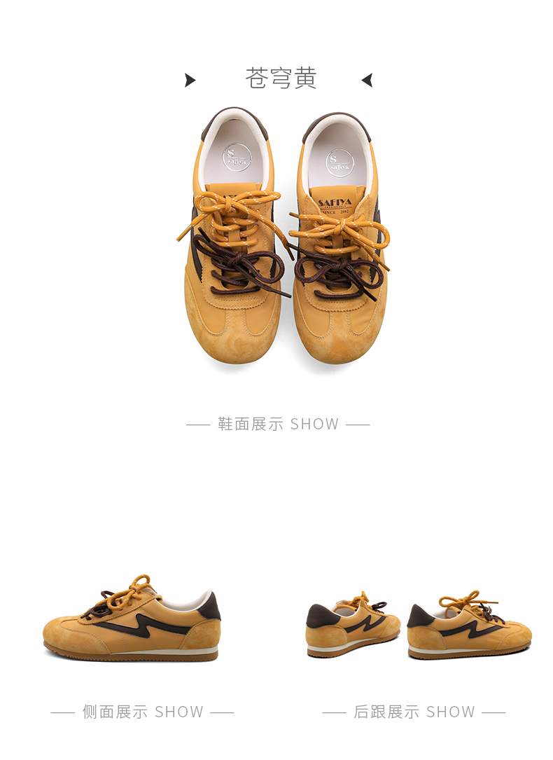 预售7天|Safiya/索菲娅2025复古拼色休闲时尚轻便圆头平底阿甘鞋SFD1112024