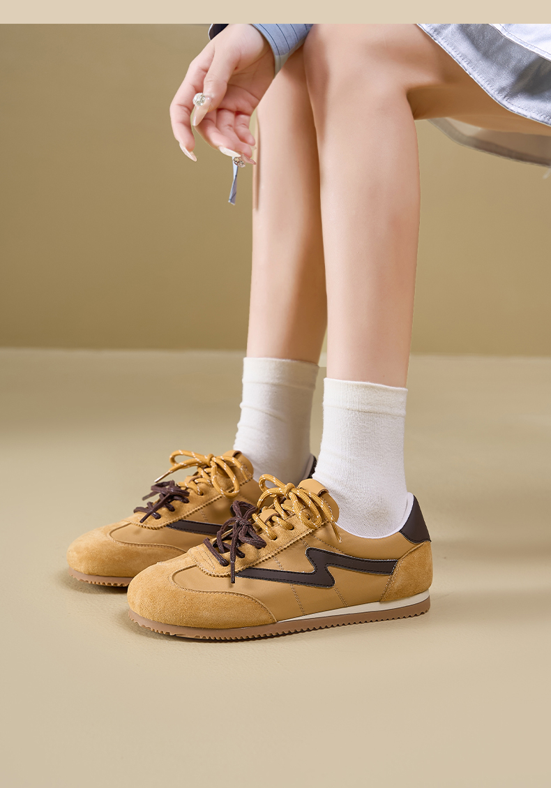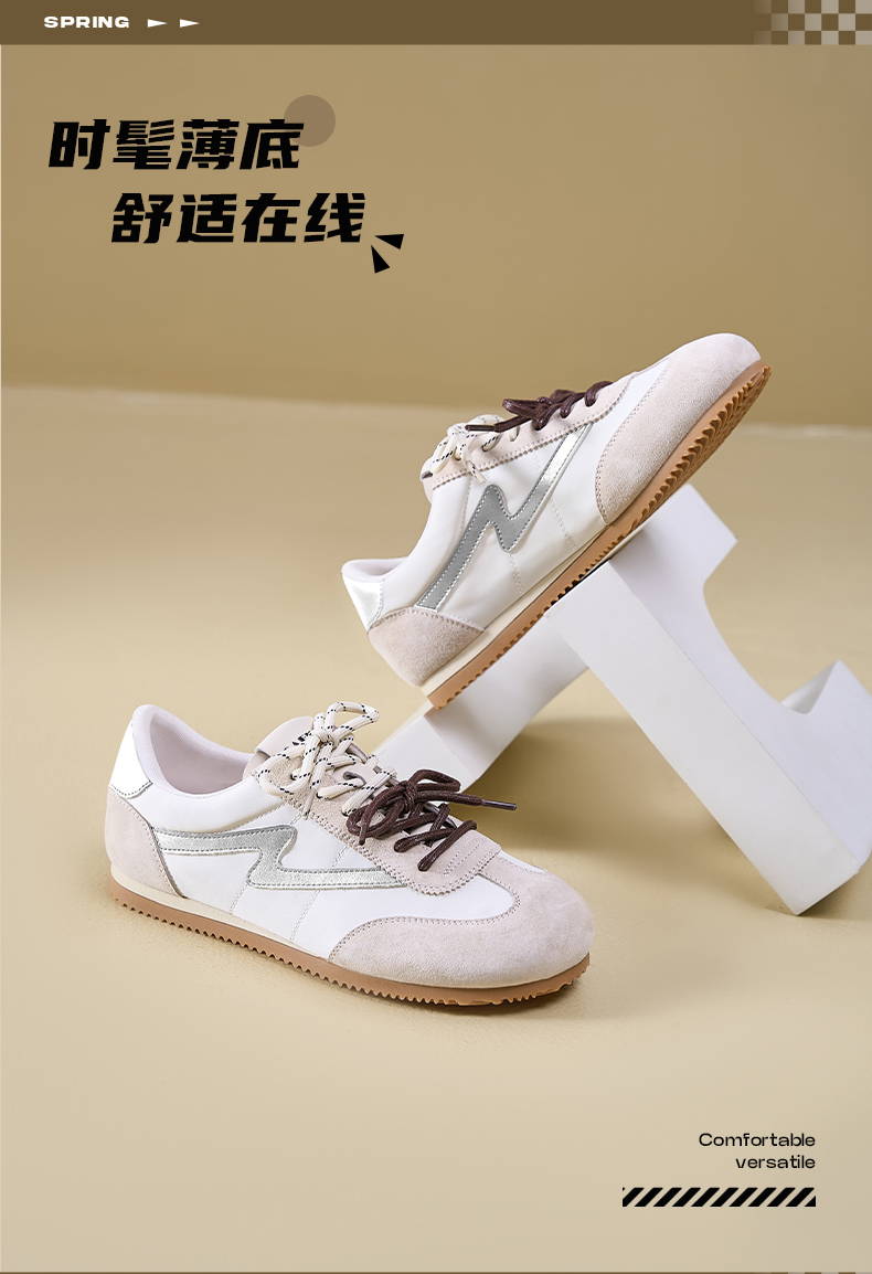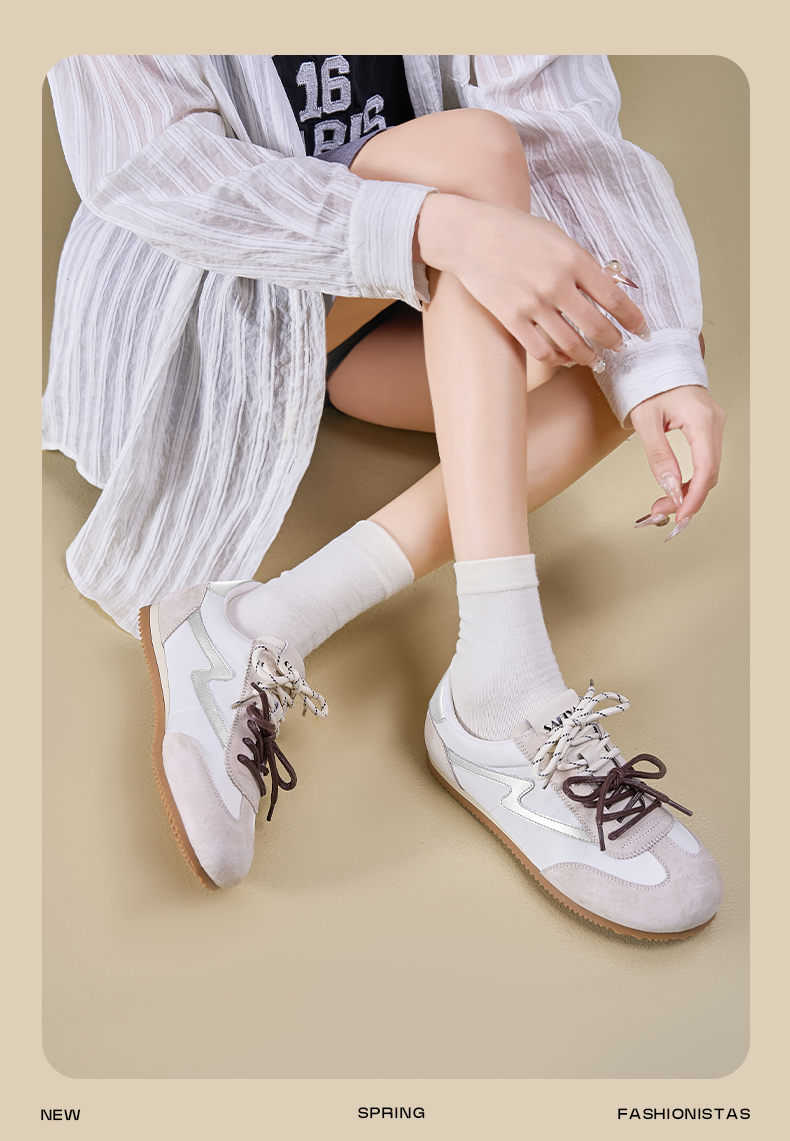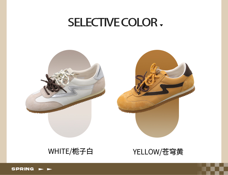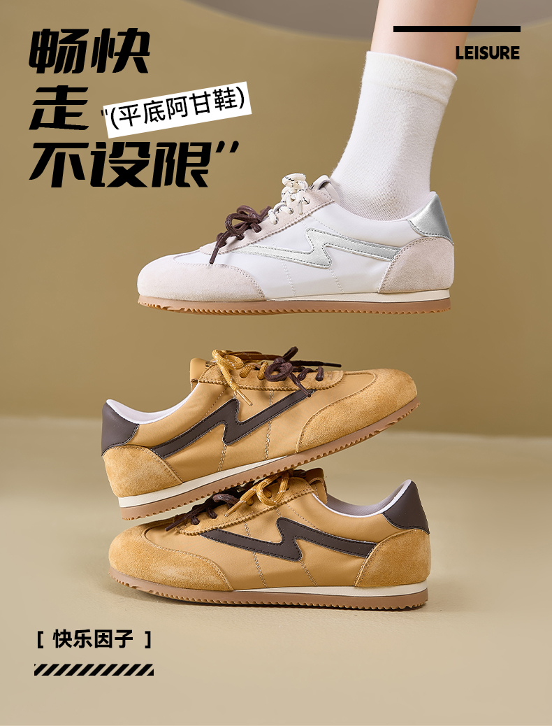 预售7天|Safiya/索菲娅2025复古拼色休闲时尚轻便圆头平底阿甘鞋SFD1112024