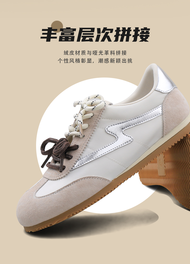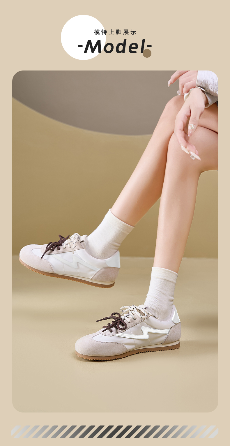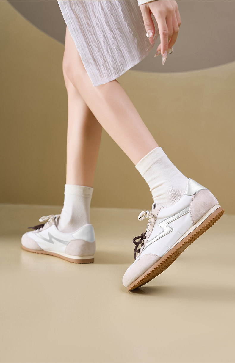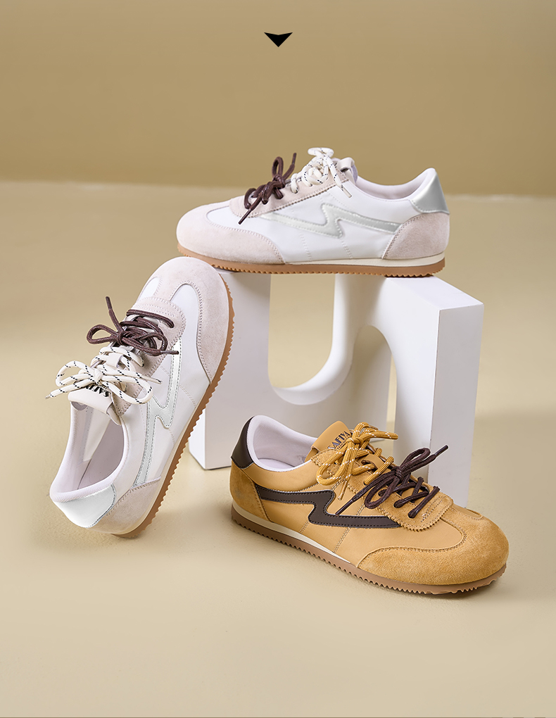 预售7天|Safiya/索菲娅2025复古拼色休闲时尚轻便圆头平底阿甘鞋SFD1112024
