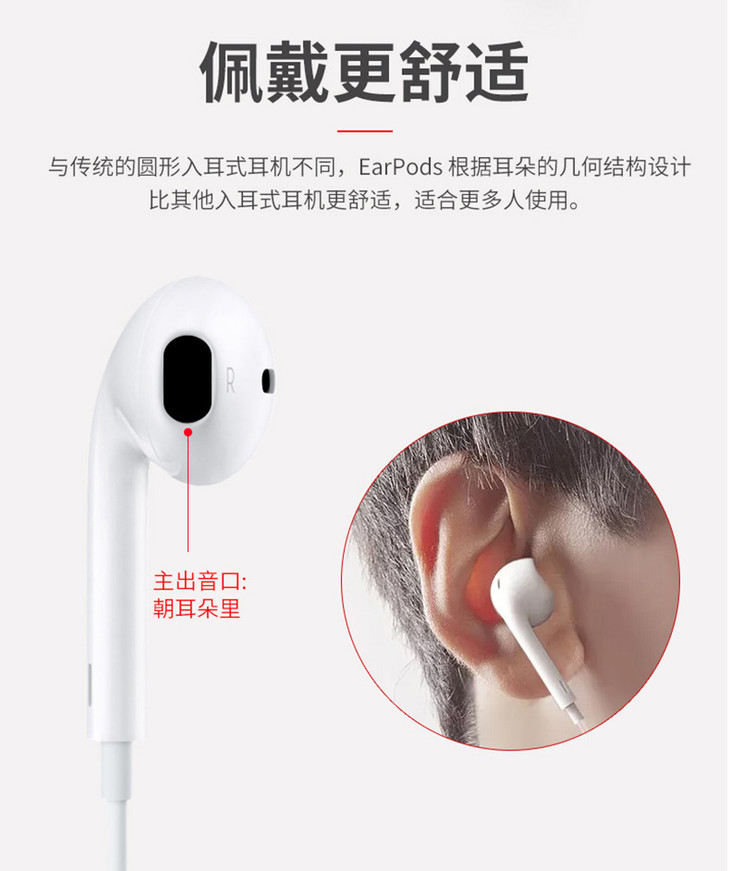 苹果原装正品手机入耳式有线控l扁头耳塞