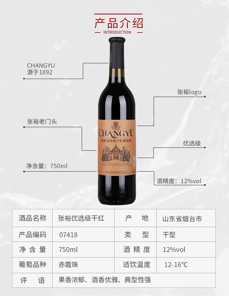 张裕赤霞珠干红酒 整箱6瓶 优选级 百年张裕 红葡萄酒 优选级赤霞珠果香浓郁典型性强