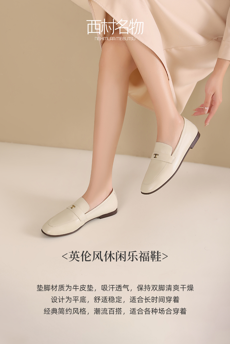 西村名物2024夏季新品真皮平底小皮鞋女软面软底通勤高级浅口单鞋X24AM13991