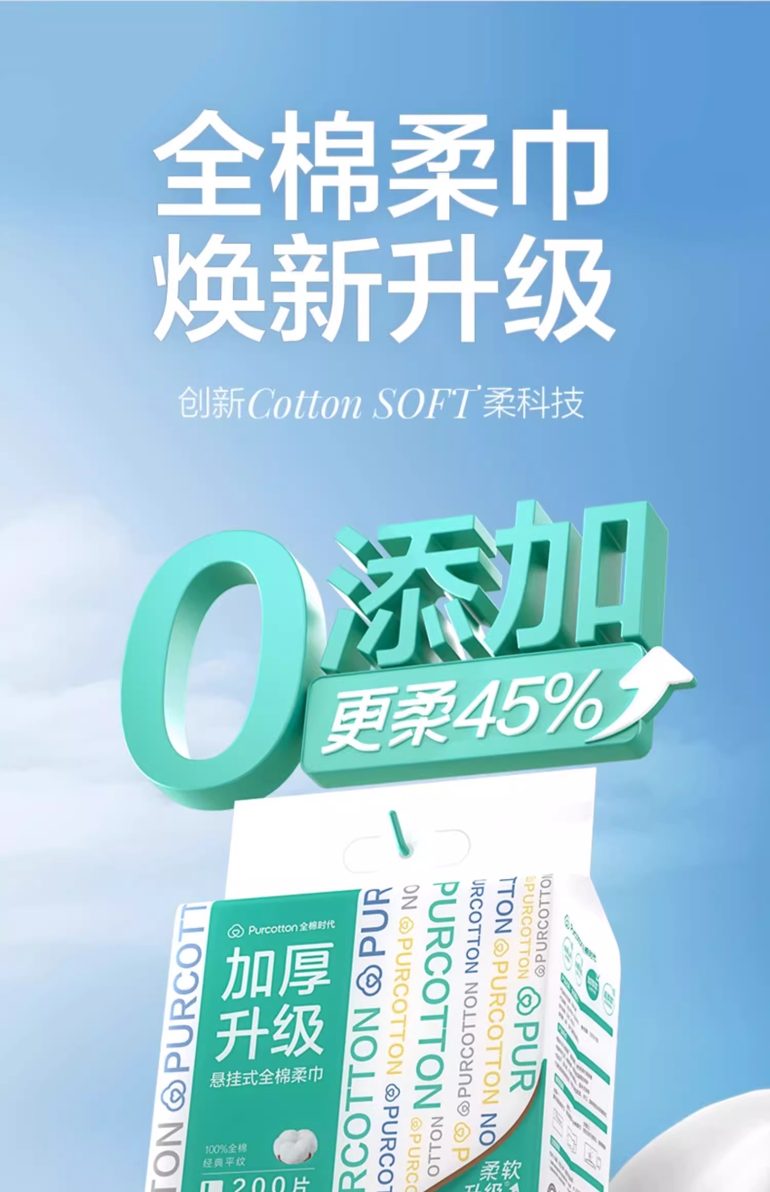 【分仓直发包邮】全棉时代2024全棉柔巾CNY版加厚升级悬挂 200抽PPJ24700084