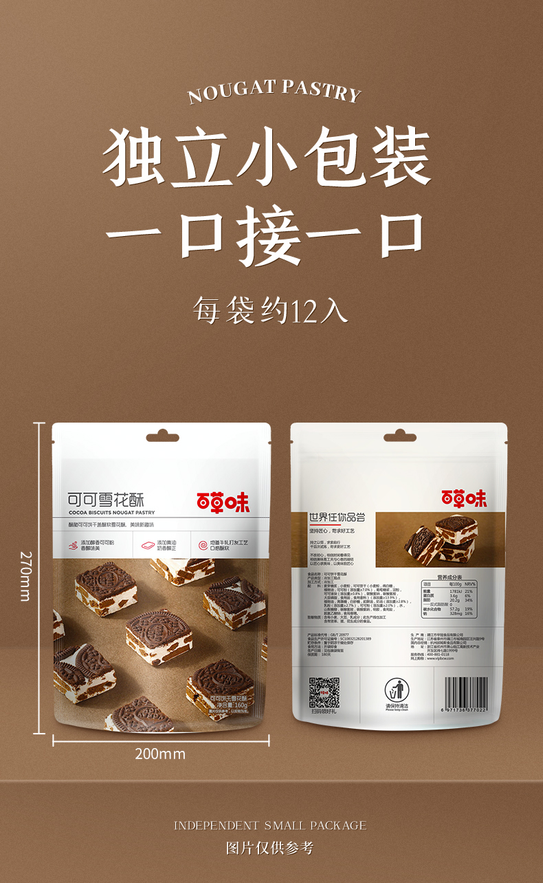 N百草味蔓越莓牛轧奶芙+可可雪花酥组合(160g+160g)