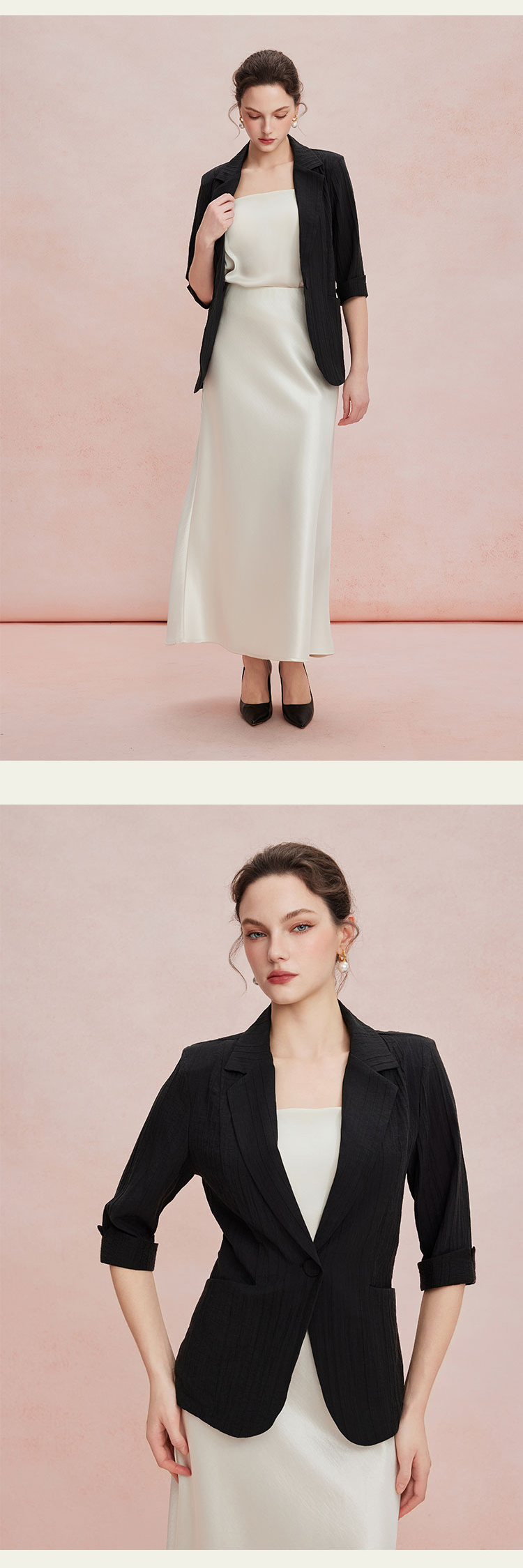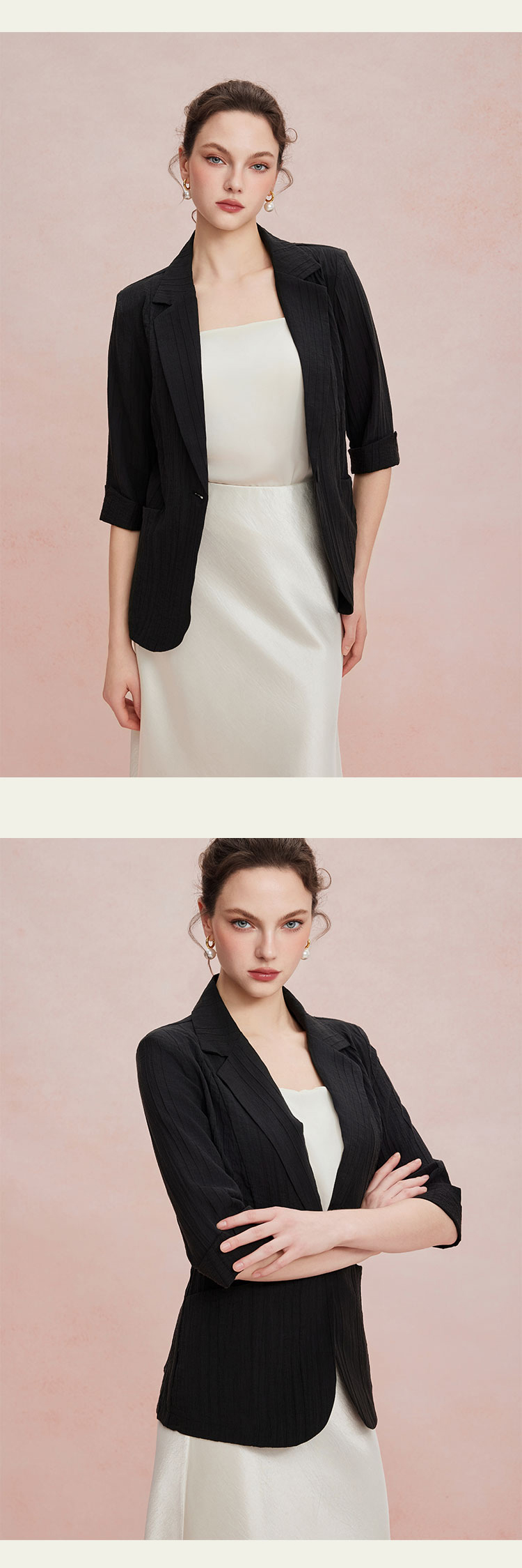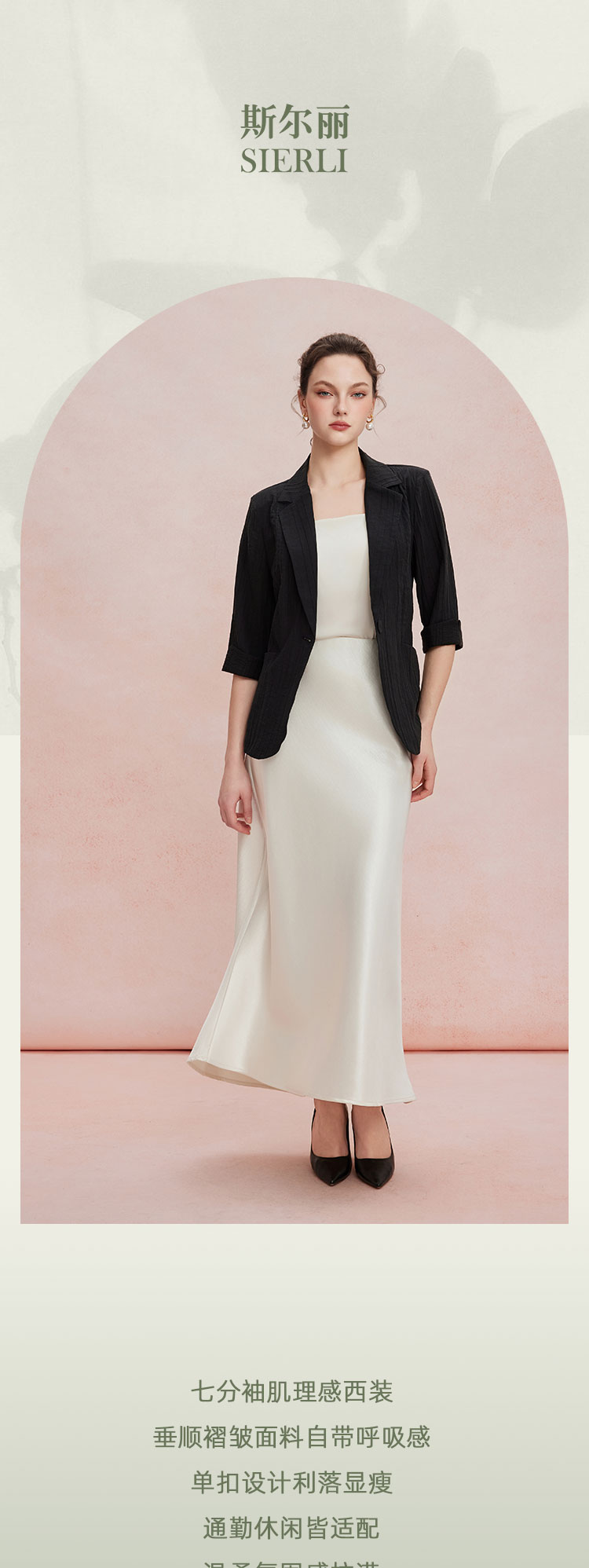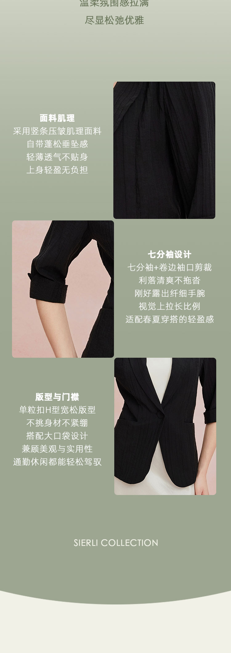 RF101斯尔丽26新款七分袖收腰通勤遮肉显瘦透气外套