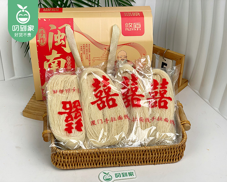 采用优质小麦粉、水、食盐,手拉精制而成;