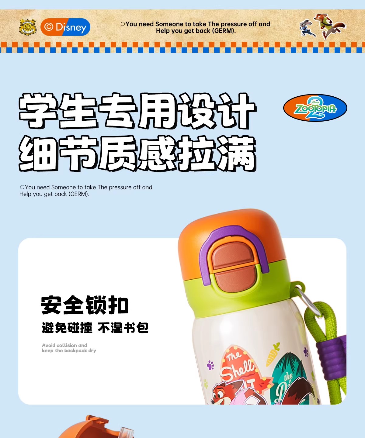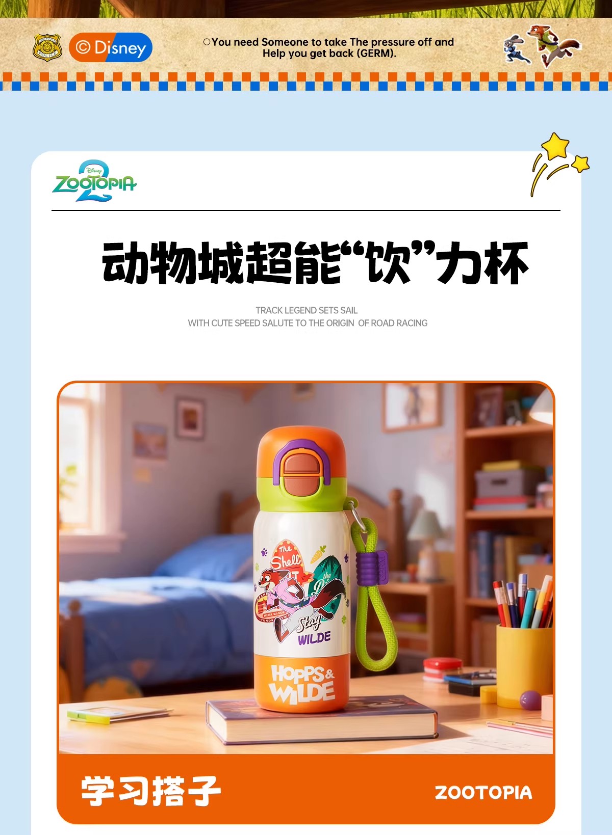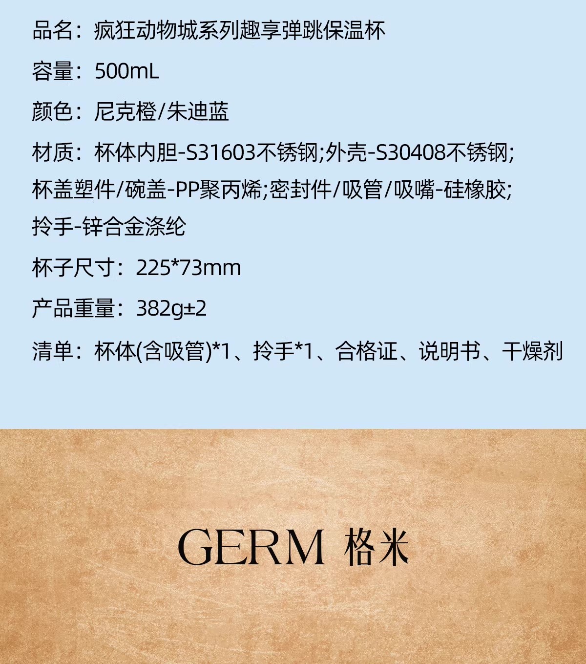 日本GERM 疯狂动物城系列趣享弹跳保温杯(不含杯套) 新款水杯新年礼物