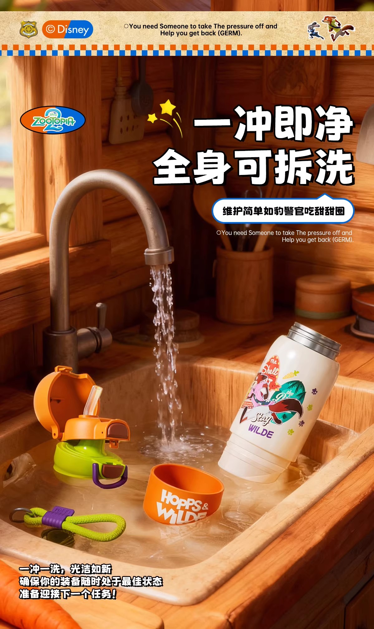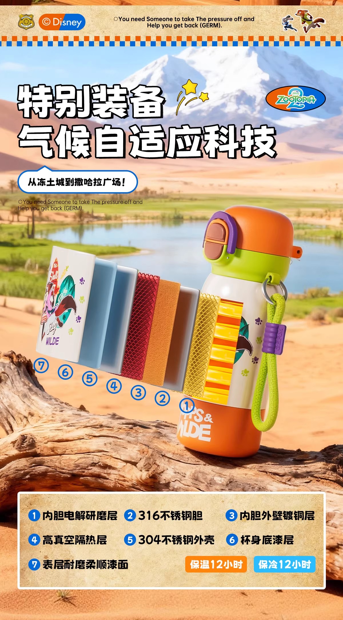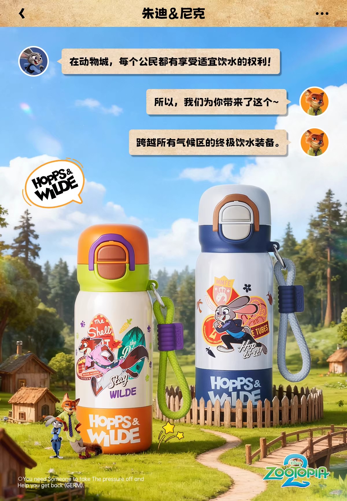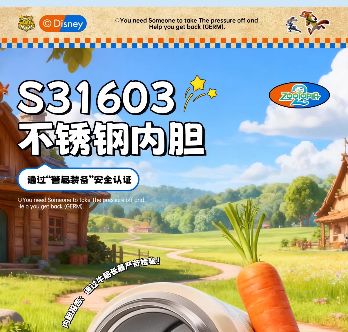 日本GERM 疯狂动物城系列趣享弹跳保温杯(不含杯套) 新款水杯新年礼物