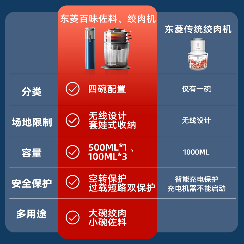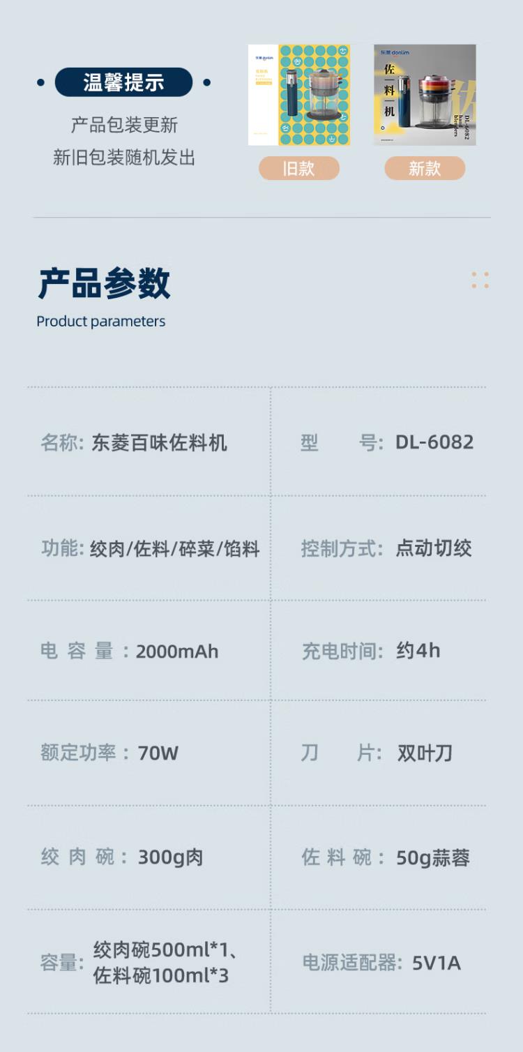 东菱 DL-6082 绞肉机家用小型绞馅机辅食机料理棒切菜碎肉机无线捣蒜器 多功能百味佐料机