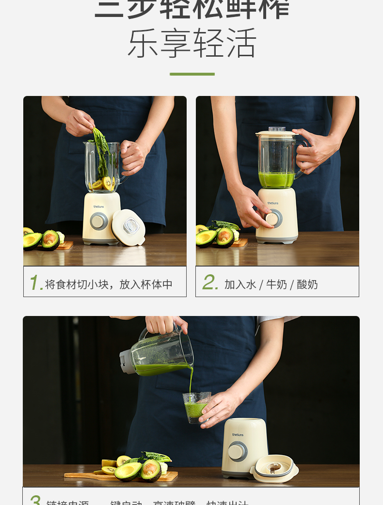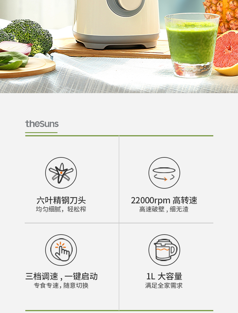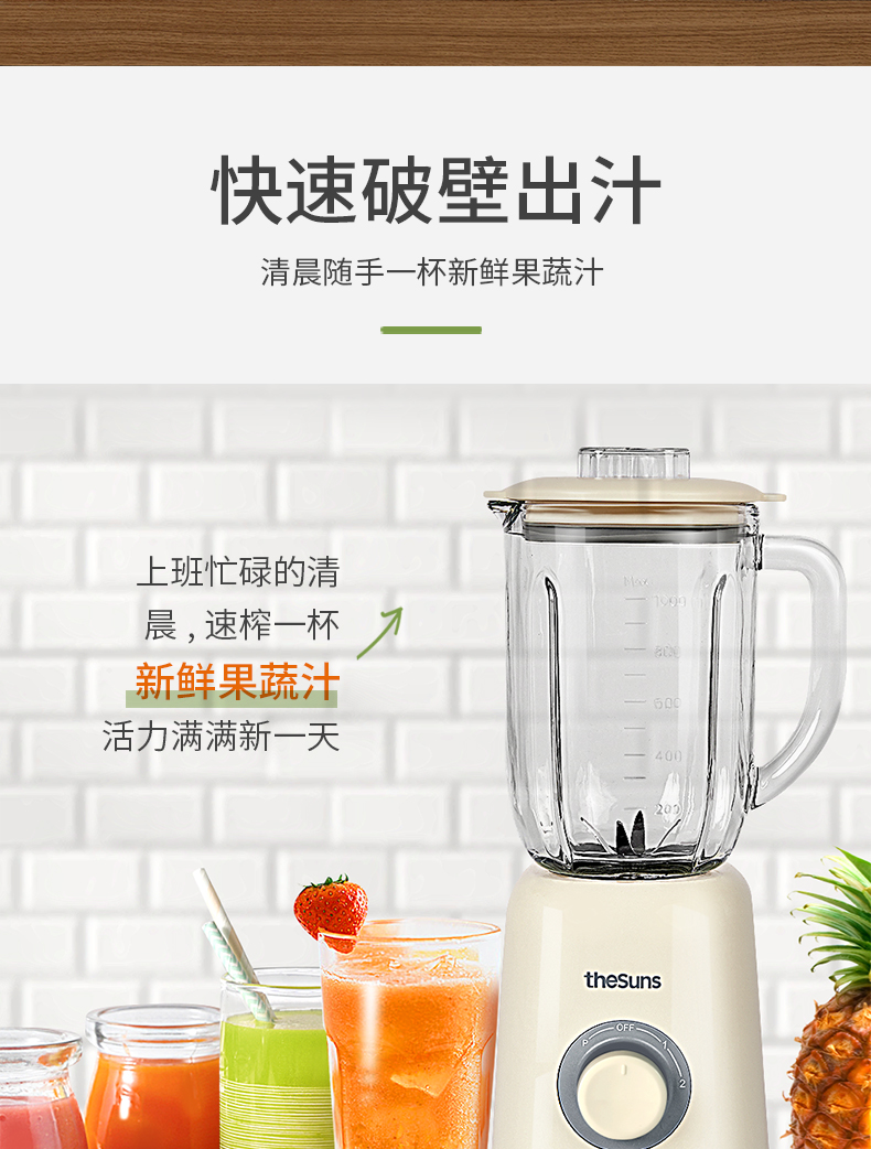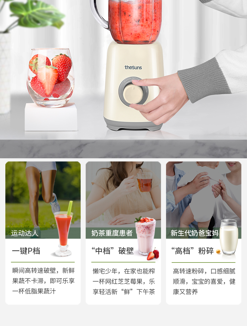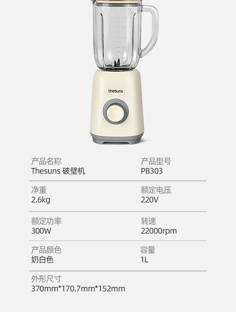 三食黄小厨THESUNS破壁机小型多功能家用智能迷你榨汁机搅拌料理机果汁机婴儿辅食机一机多用易清洗奶白色