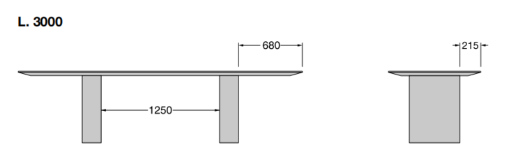 实心栗色的桌面似乎悬浮在2个中央置支撑脚上,这些支撑脚的特殊手工几何形状,即敞开的半曲线,完全手工完成,其厚度像一张用抛光制成的薄纸,从而产生不断变化的反射效果。