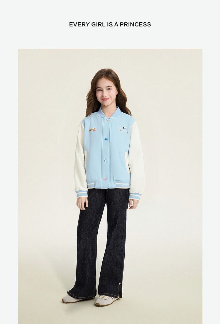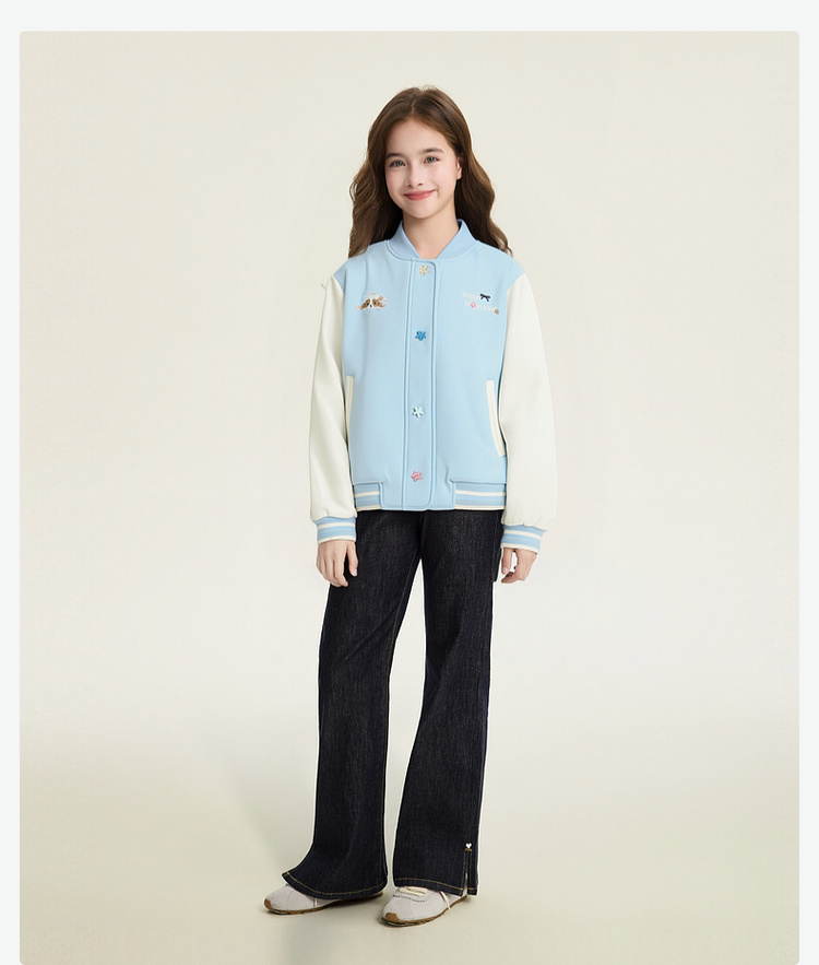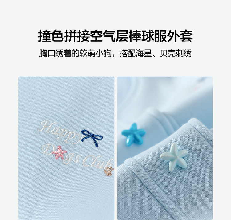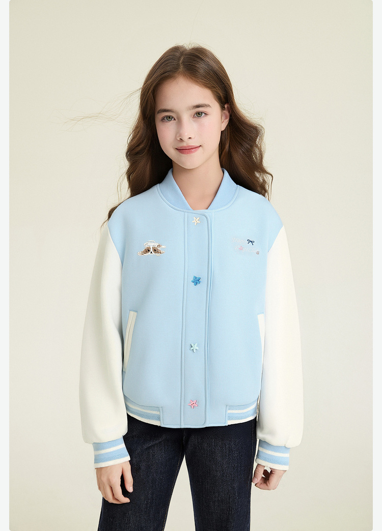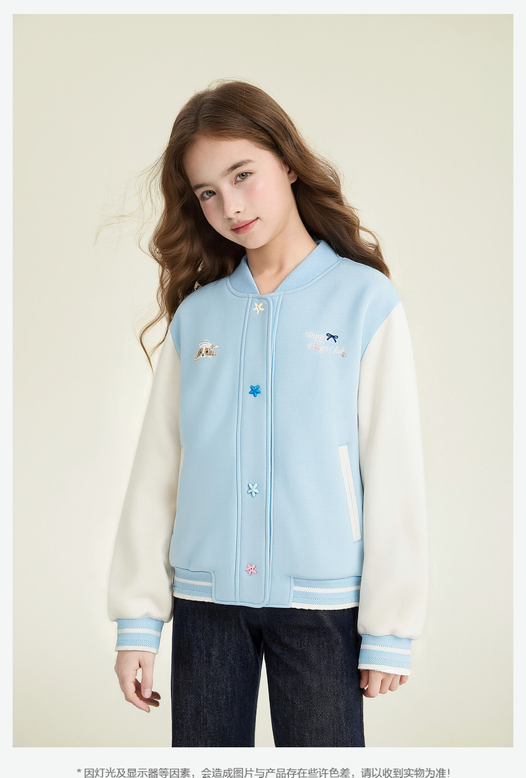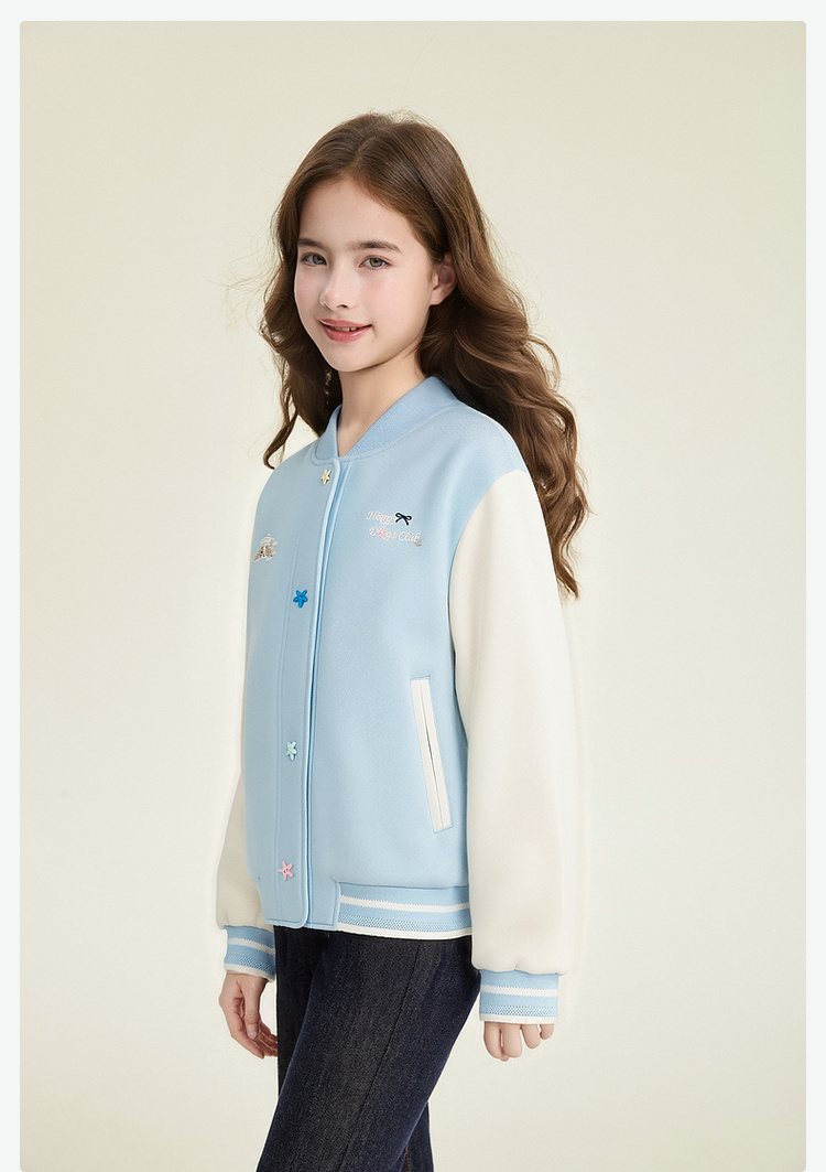 笛莎Deesha 童装女童外套2026春新款撞色拼接空气层棒球服外套