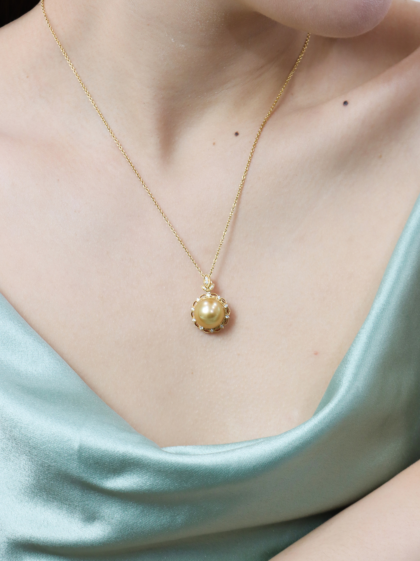 【日本溯源之旅】18k金南洋金珠钻石吊坠12-13mm钻石分数:0.15ct(展会产品拍下后不支持7天无理由退换货)