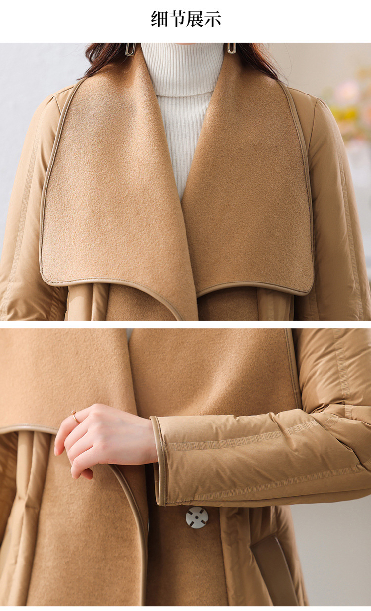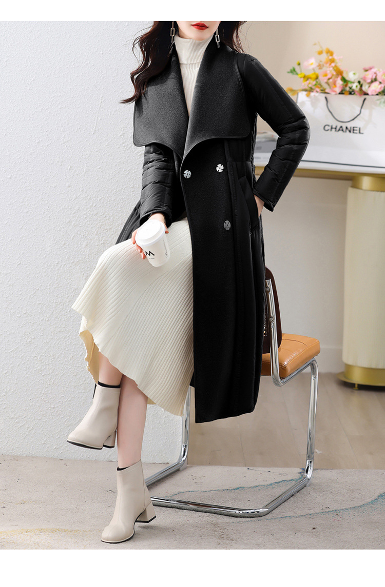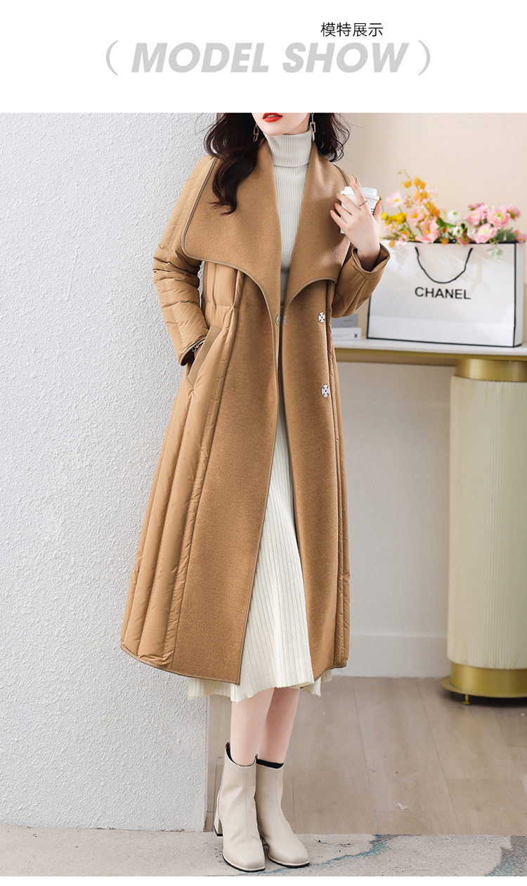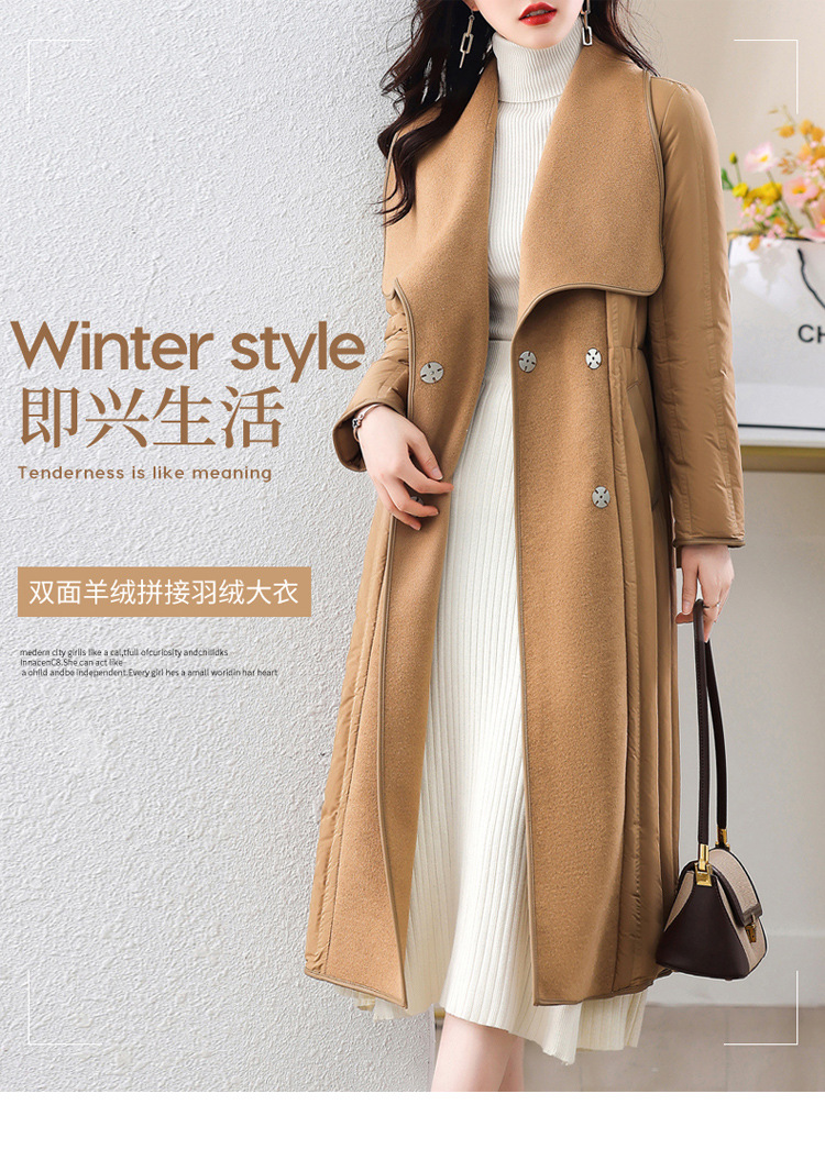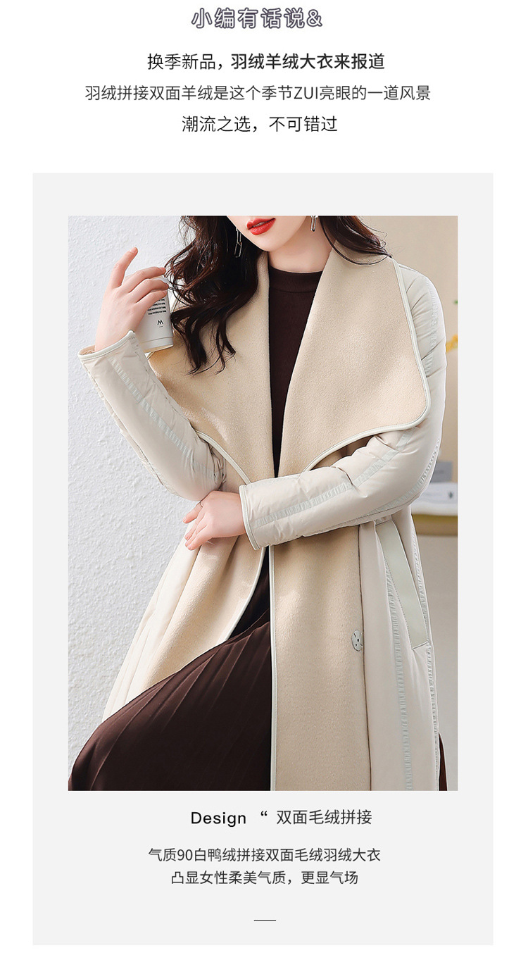 冬季90白鸭绒羽绒服大衣羊绒双面毛呢子拼接外套HR-WY609-19