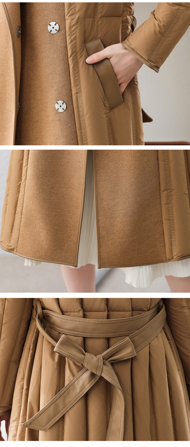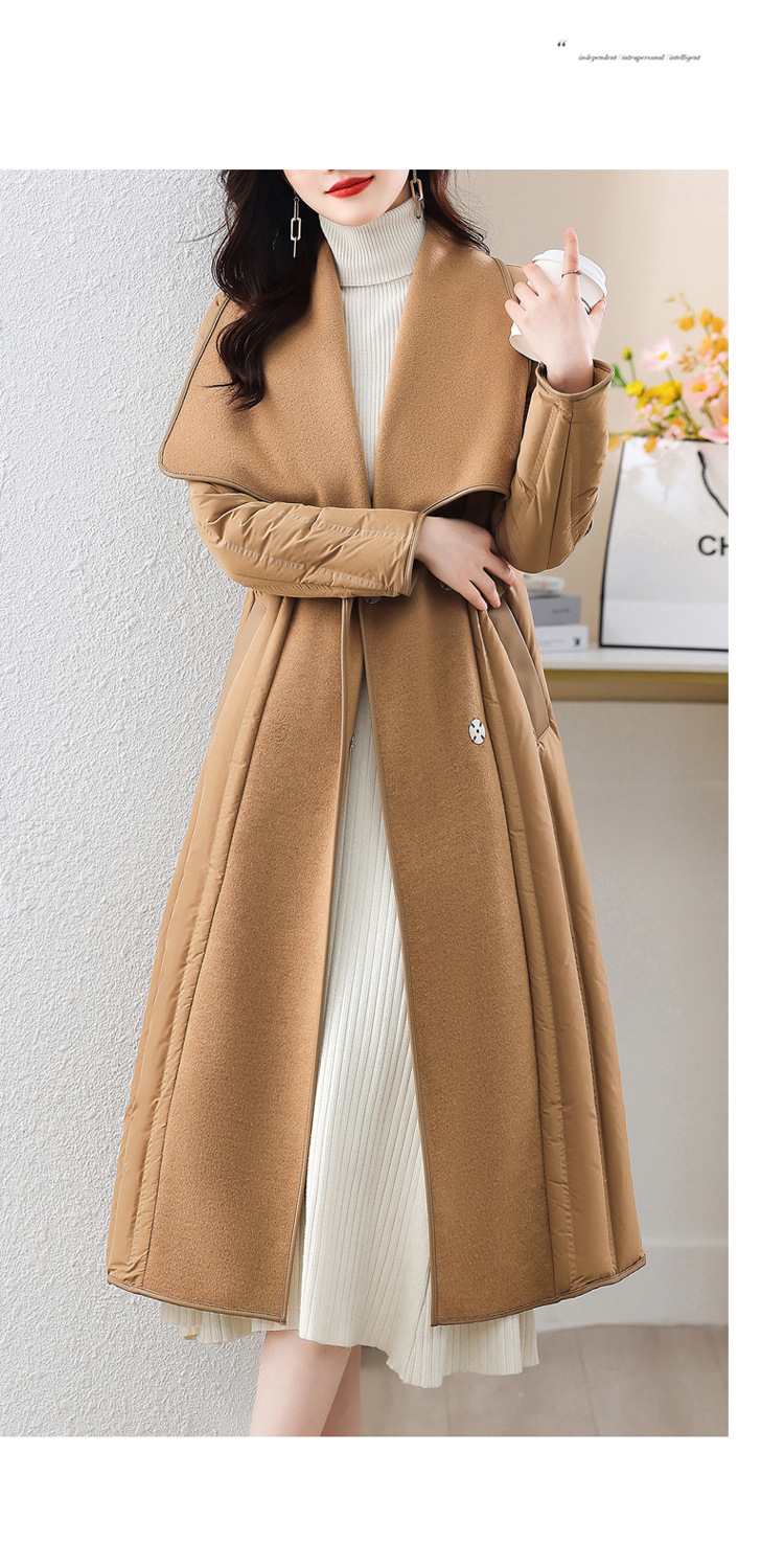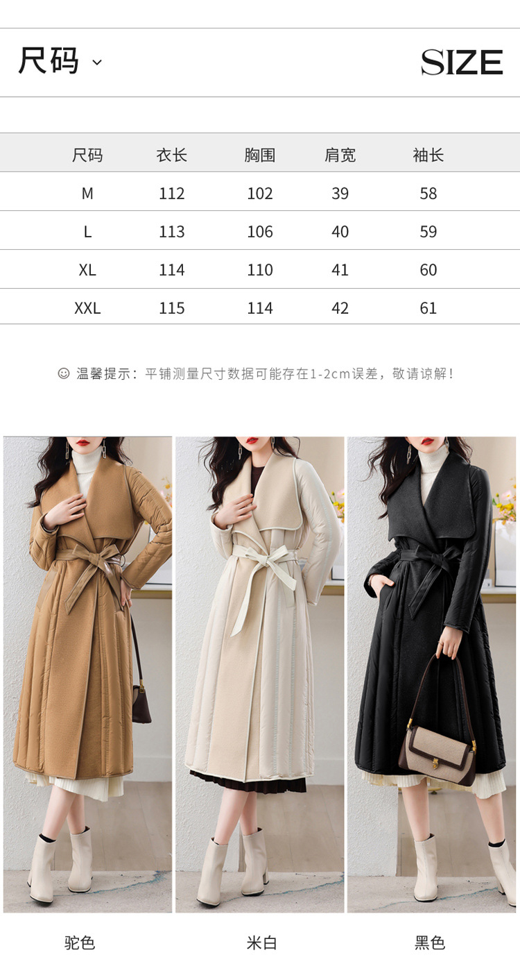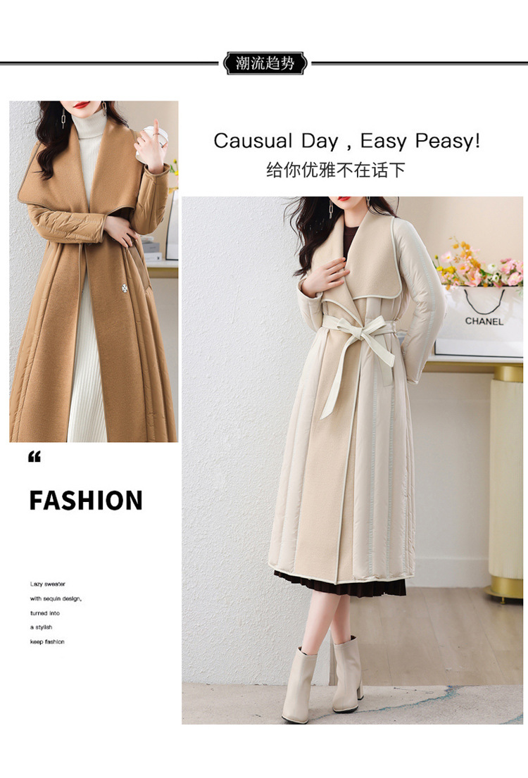 冬季90白鸭绒羽绒服大衣羊绒双面毛呢子拼接外套HR-WY609-19