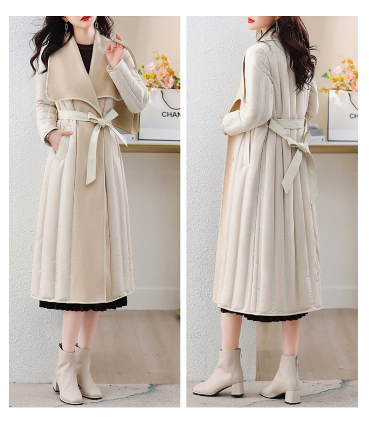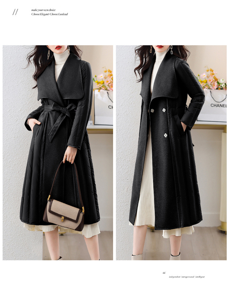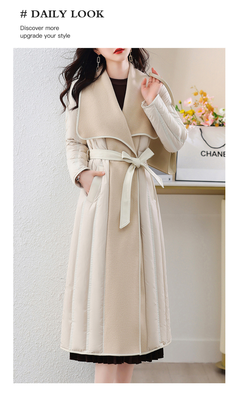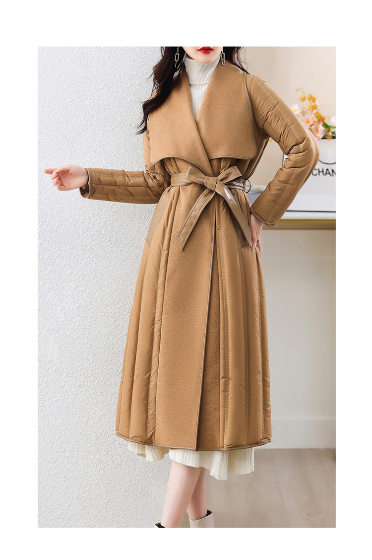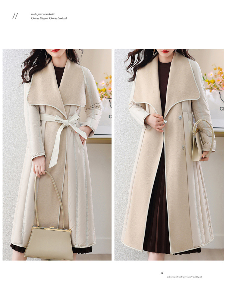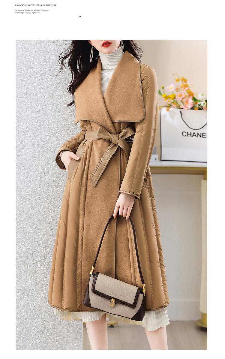 冬季90白鸭绒羽绒服大衣羊绒双面毛呢子拼接外套HR-WY609-19