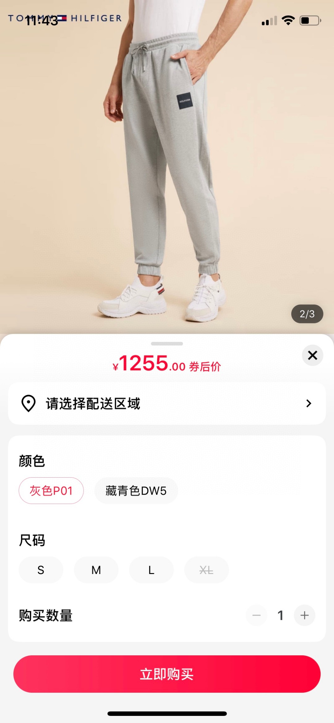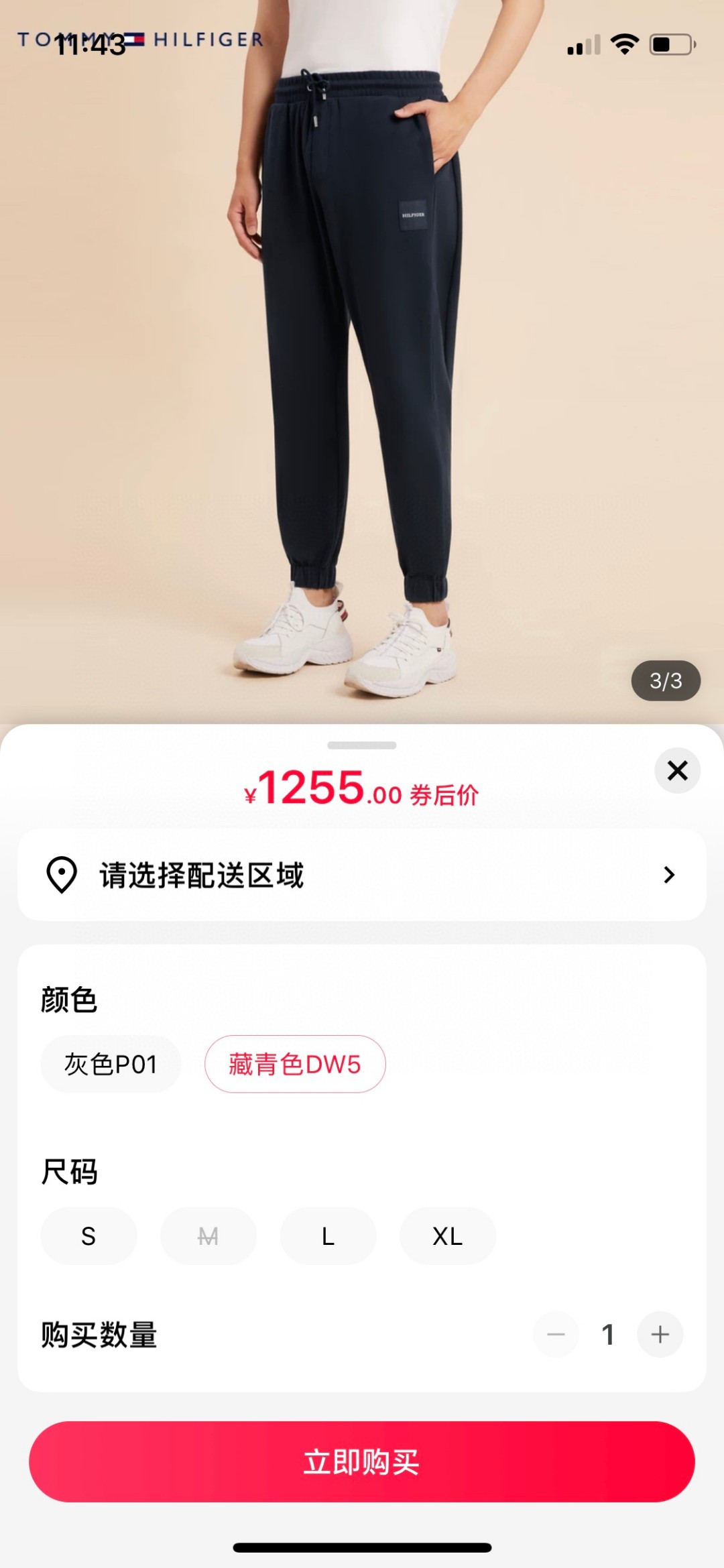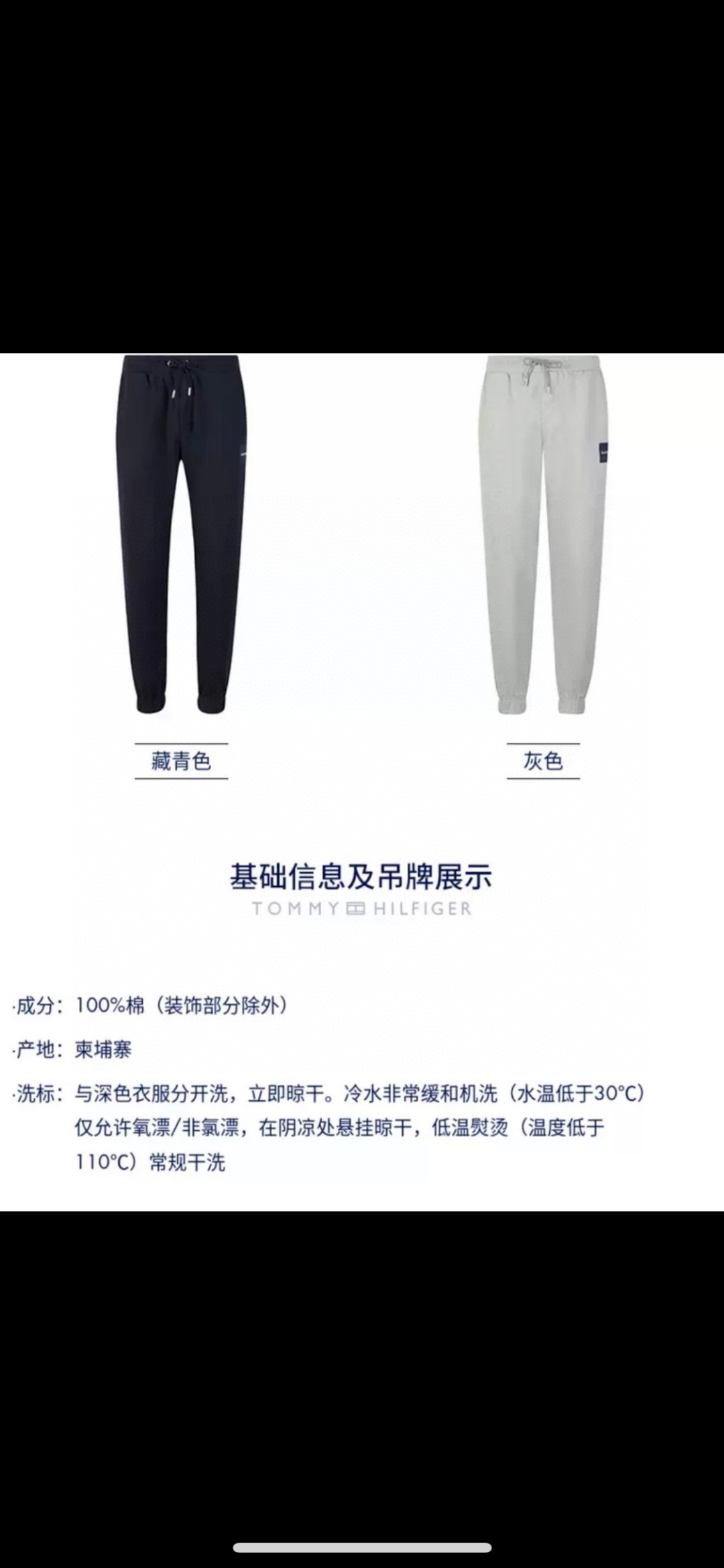 汤米Tommy男士休闲 百搭 纯棉简约织布标抽绳束脚宽松卫裤